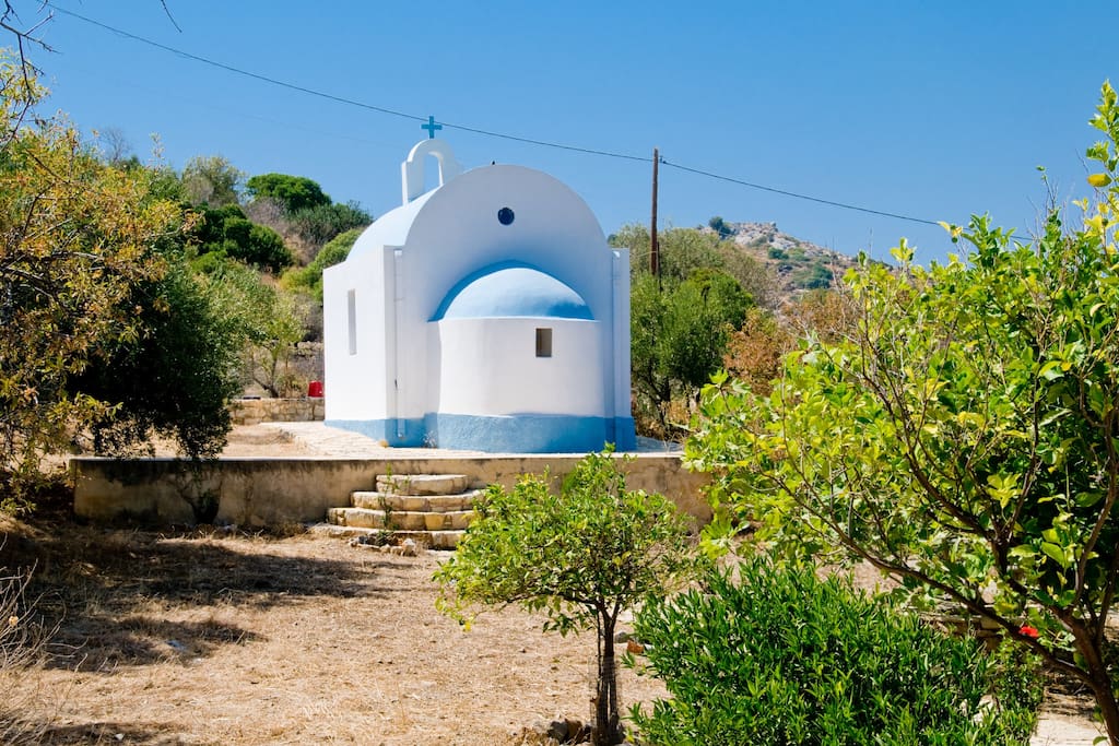 Si trova nella parte settentrionale di Leros, in una zona chiamata Blefouti, a solo un chilometro dall'aeroporto. Di fronte ad essa, si trova una bella e tranquilla baia. All'entrata della baia, è possibile trovare una piccola isola deserta, chiamata isola Stroggyli.