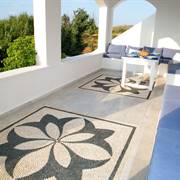 Villa con mosaici di ciottoli, vicino al mare, in una tenuta di quattro acri con una chiesa privata e un uliveto di oltre 100 anni. Ha una vista meravigliosa e fornisce un senso di assoluto silenzio.