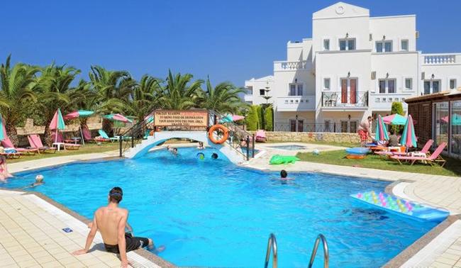 Situato nella zona di Malia offre 2 grandi piscine con lettini e 1 piscina per bambini, un giardino ben curato, area bambini, bar, cassaforte, aria condizionata, TV satellitare (Sky Sports), punto internet, parcheggio gratuito, organizzazione di barbecue ed intrattenimento.