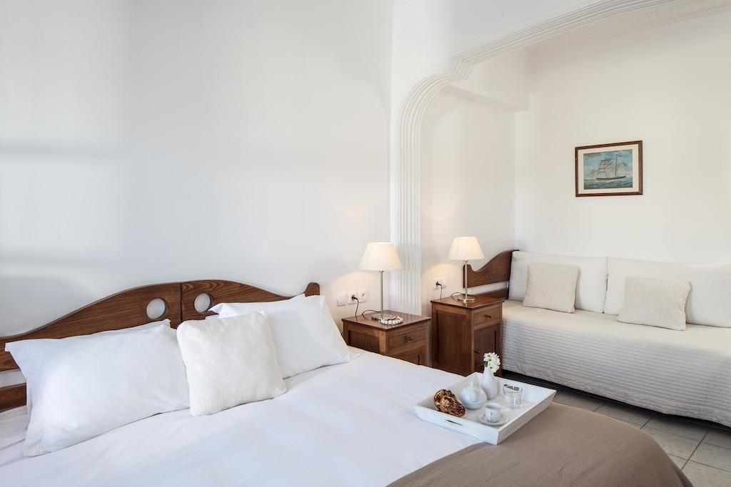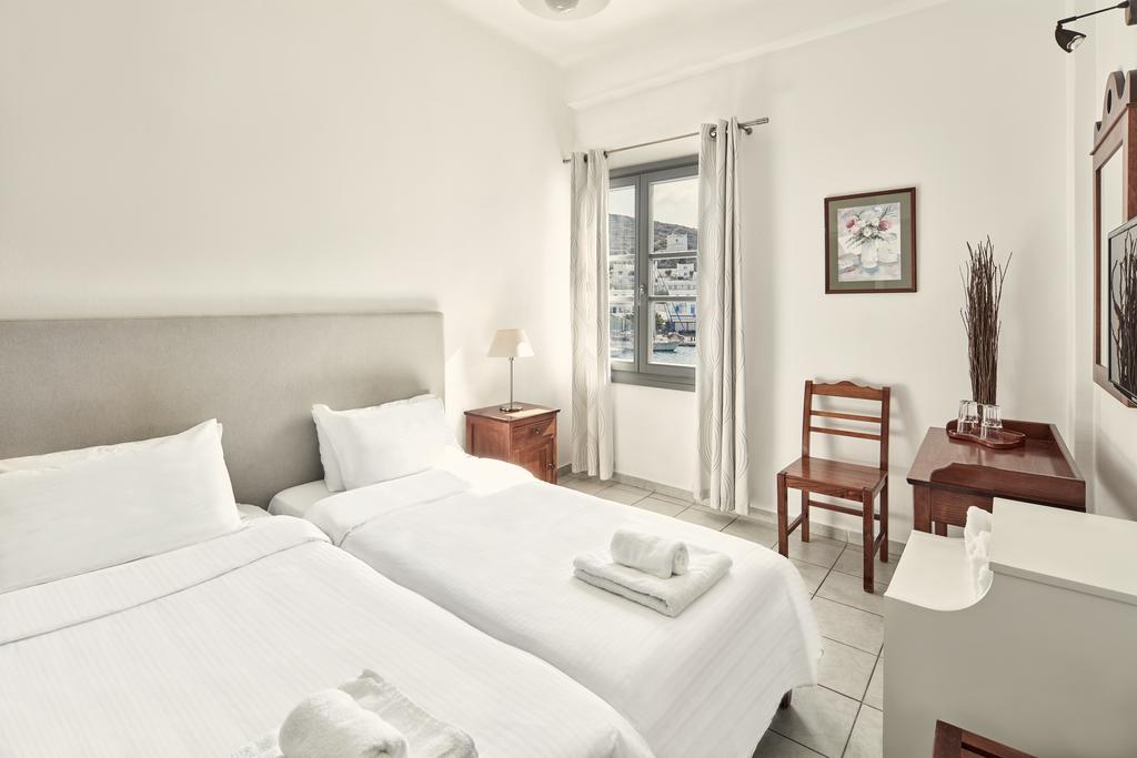 Tutte le sistemazioni sono provviste di un bagno privato con doccia, dell'aria condizionata, di una TV e di un frigorifero. La maggior parte vanta inoltre una magnifica vista sul porto e sulla spiaggia di Yialos.