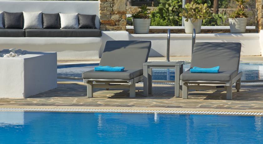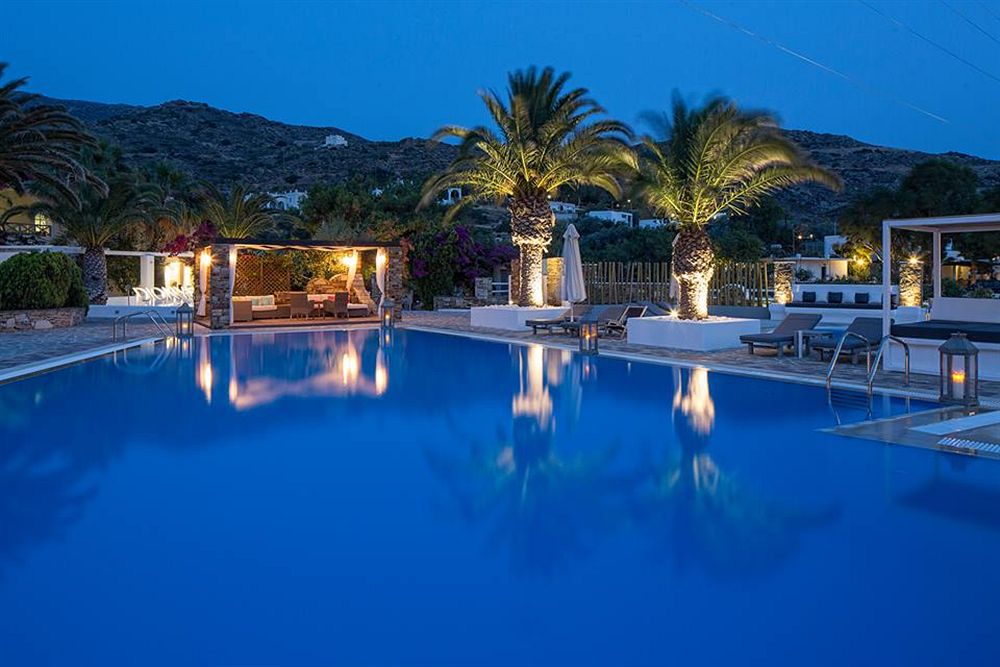 Albergo a 4 stelle situato proprio sulla spiaggia di Mylopotas, il Dionysos Seaside Resort offre sistemazioni dagli arredi eleganti con vista sul mare, sulla piscina o sul giardino, un campo da tennis, 2 piscine, un bar sulla spiaggia e un ristorante alla carta.