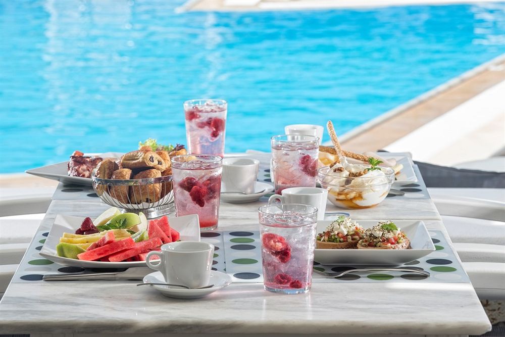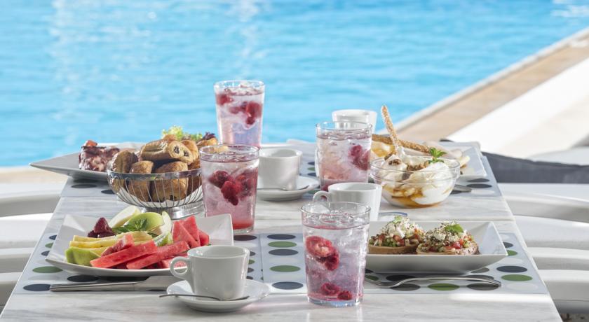 Tutte le camere e le suite sono dotate di balcone o terrazza, aria condizionata, set di cortesia, TV satellitare e minifrigorifero. L'intera struttura è coperta dalla connessione Wi-Fi gratuita. Caratterizzato da una posizione fronte mare, il ristorante mediterraneo alla carta vanta viste sul Mar Egeo e un ambiente lussuoso, mentre il bar a bordo piscina serve drink e bevande rinfrescanti.