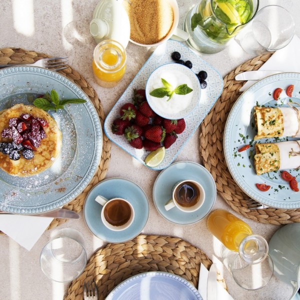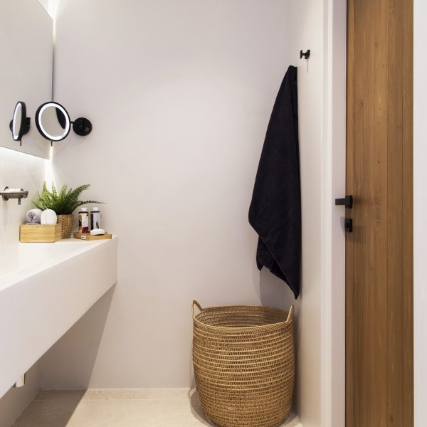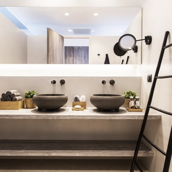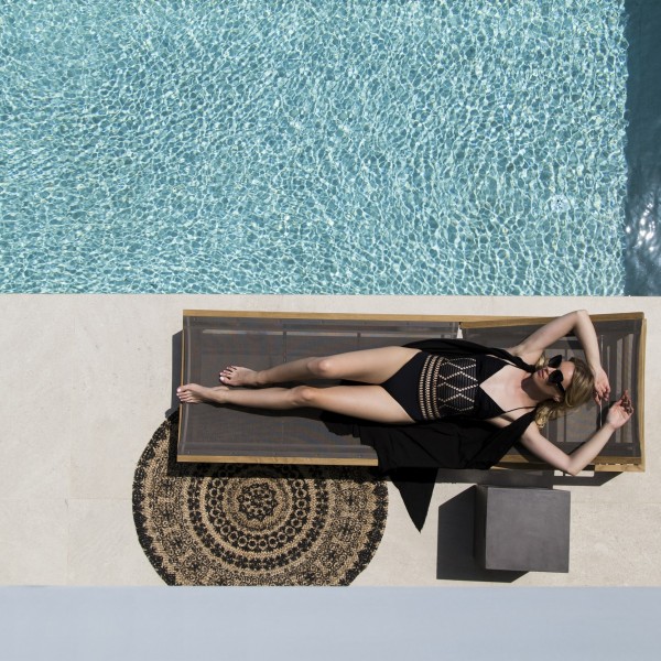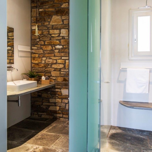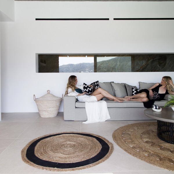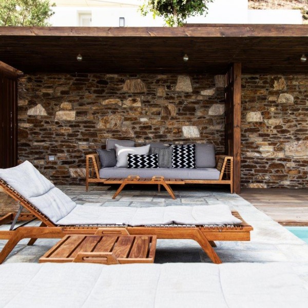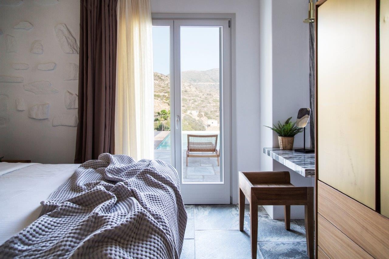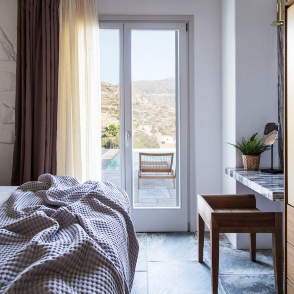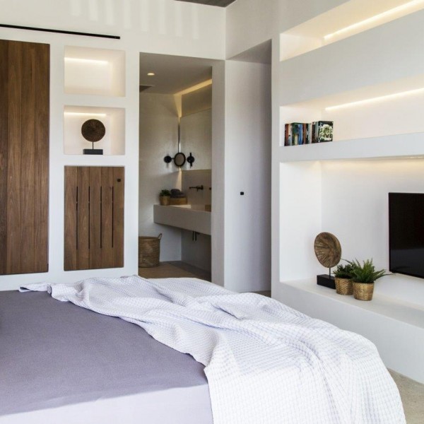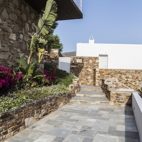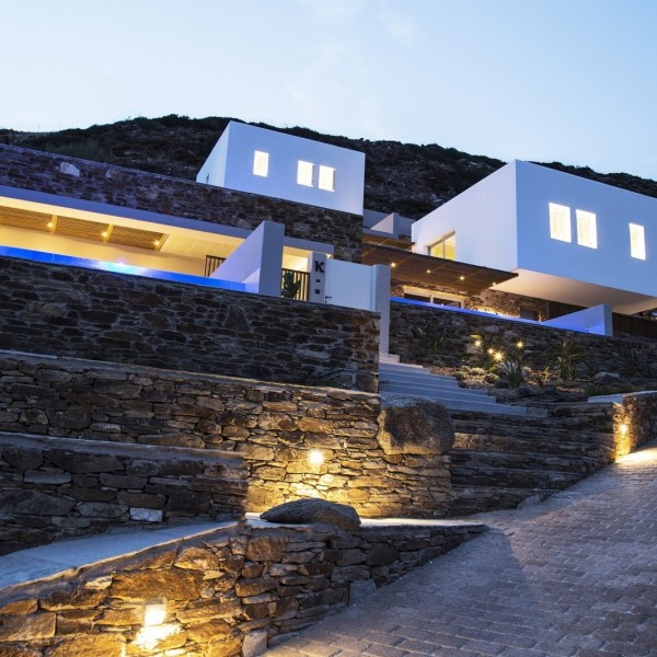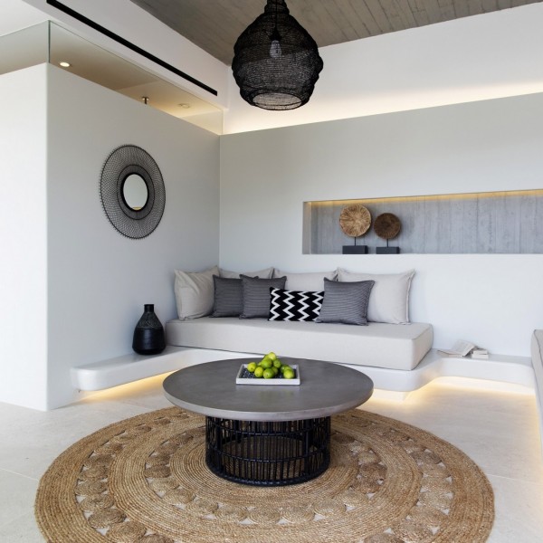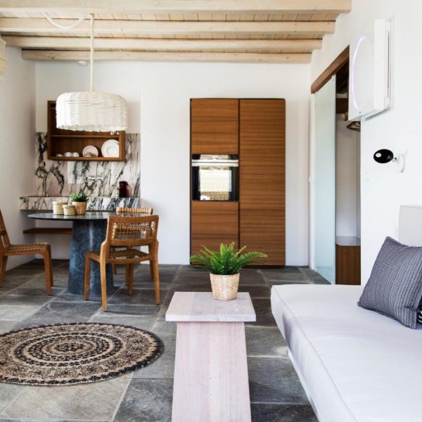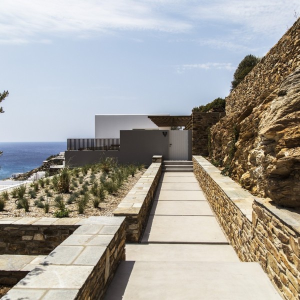 Il complesso è costruito rispetto al suo ambiente naturale, come se fosse uno con il paesaggio dell'isola di iOS. Lo stile tradizionale si bilancia armonicamente con l'architettura contemporanea, linee greche chiare, spaziosi interni, elementi minimi di decorazione e design, per trasmettere un umore di sistema operativo di rilassamento. Il momento clou di ogni suite è la veranda con un'area salotto e una piscina privata, tutte con viste sull'infinito blu. Hideout è progettato per coloro che vedono veri piaceri per le vacanze, come svegliarsi con panorami affascinanti, nuotare nella piscina privata, rilassarsi nella sala esterna, indulgere in trattamenti spa e sperimentare servizi alberghieri premium.