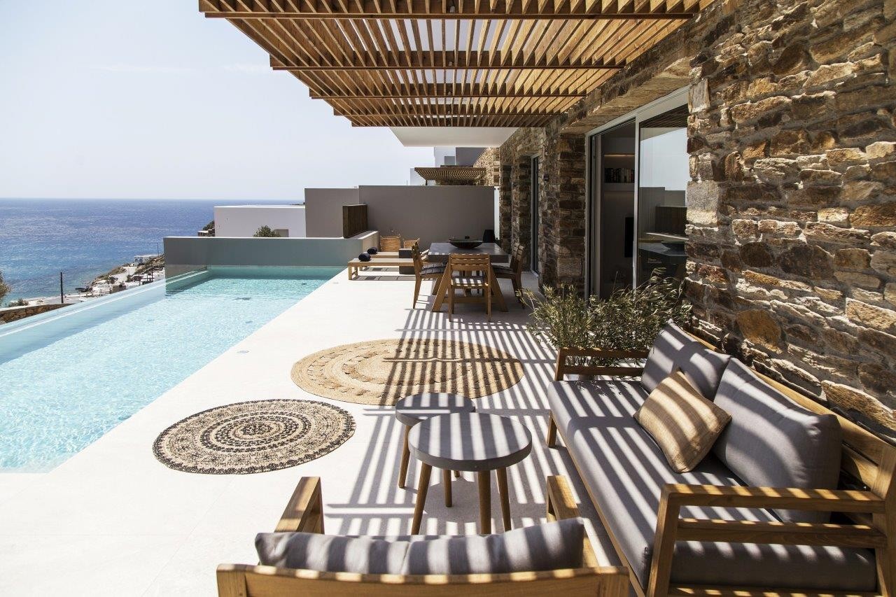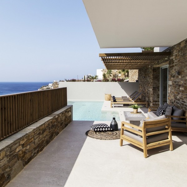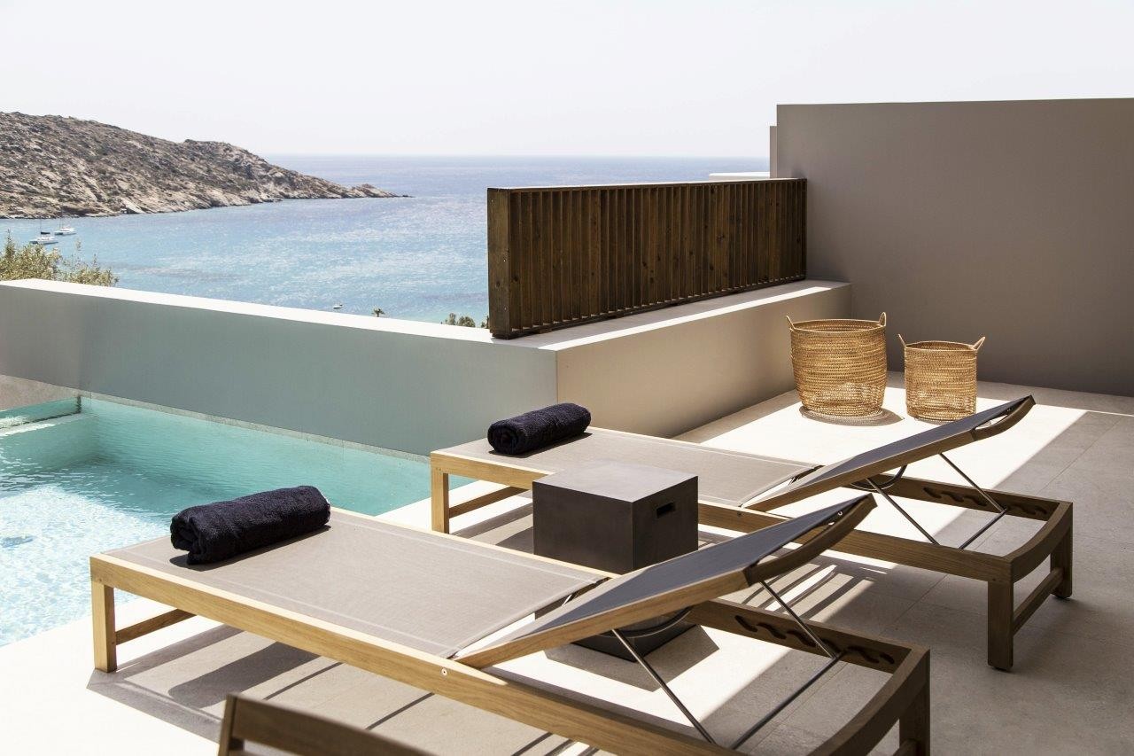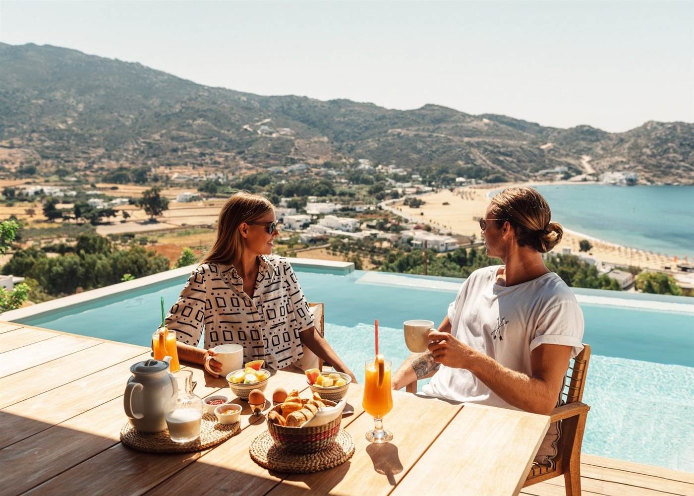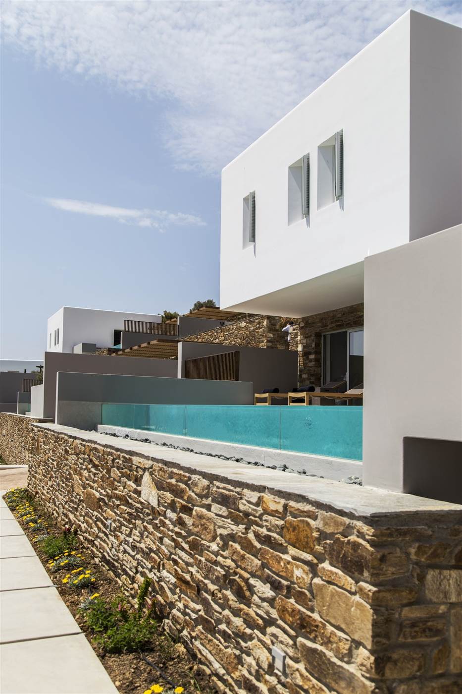 Su una collina proprio sopra la spiaggia di Mylopota premiata, con vista sulle acque scintillanti dell'Egeo, Hideout Suites è un complesso cicladico bianco cicladico di 12 suite di lusso, ne hanno una con la loro piscina privata di Veranta e nuoto.