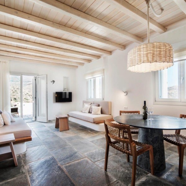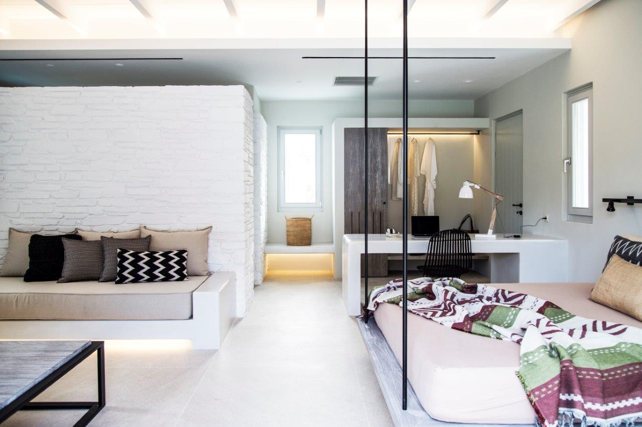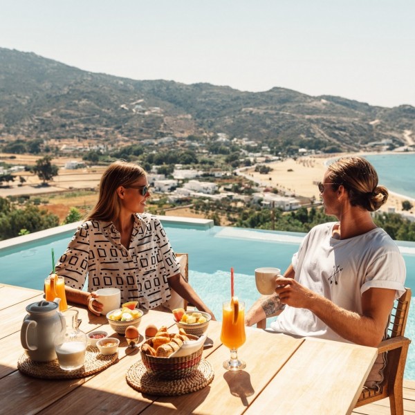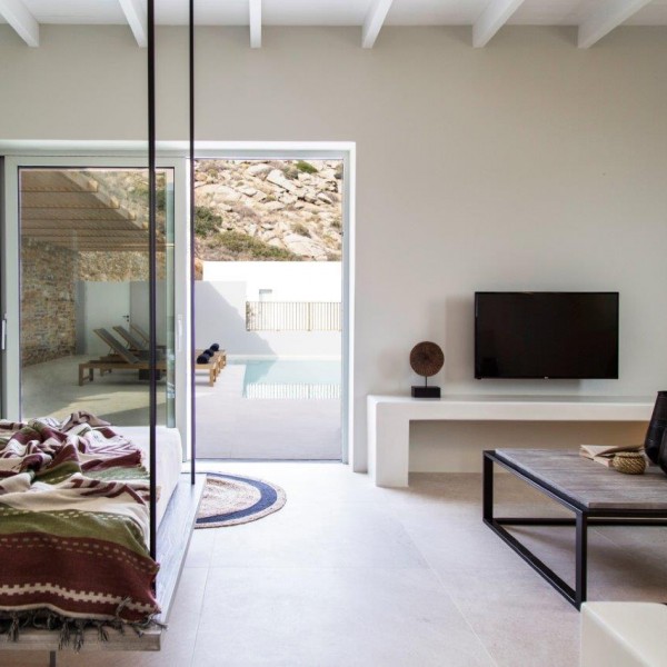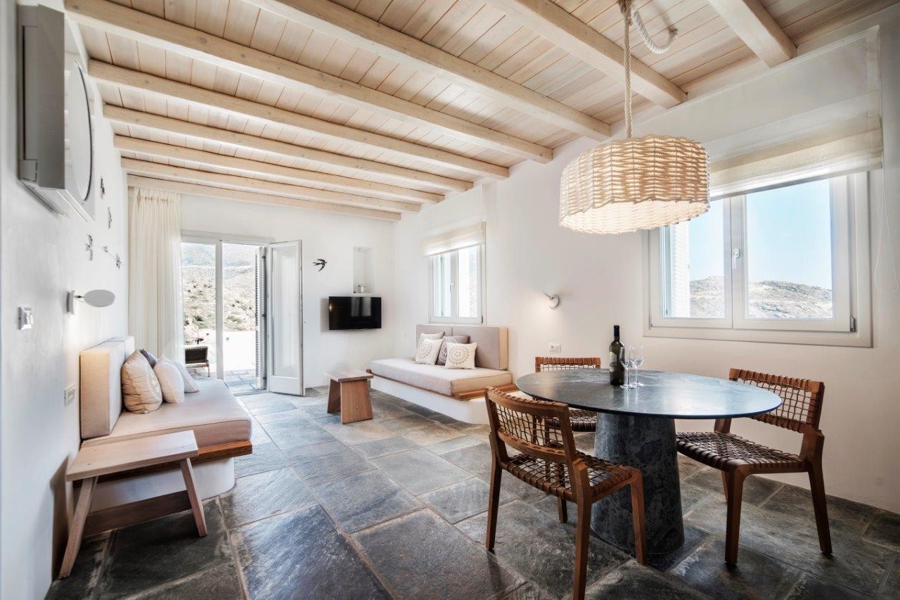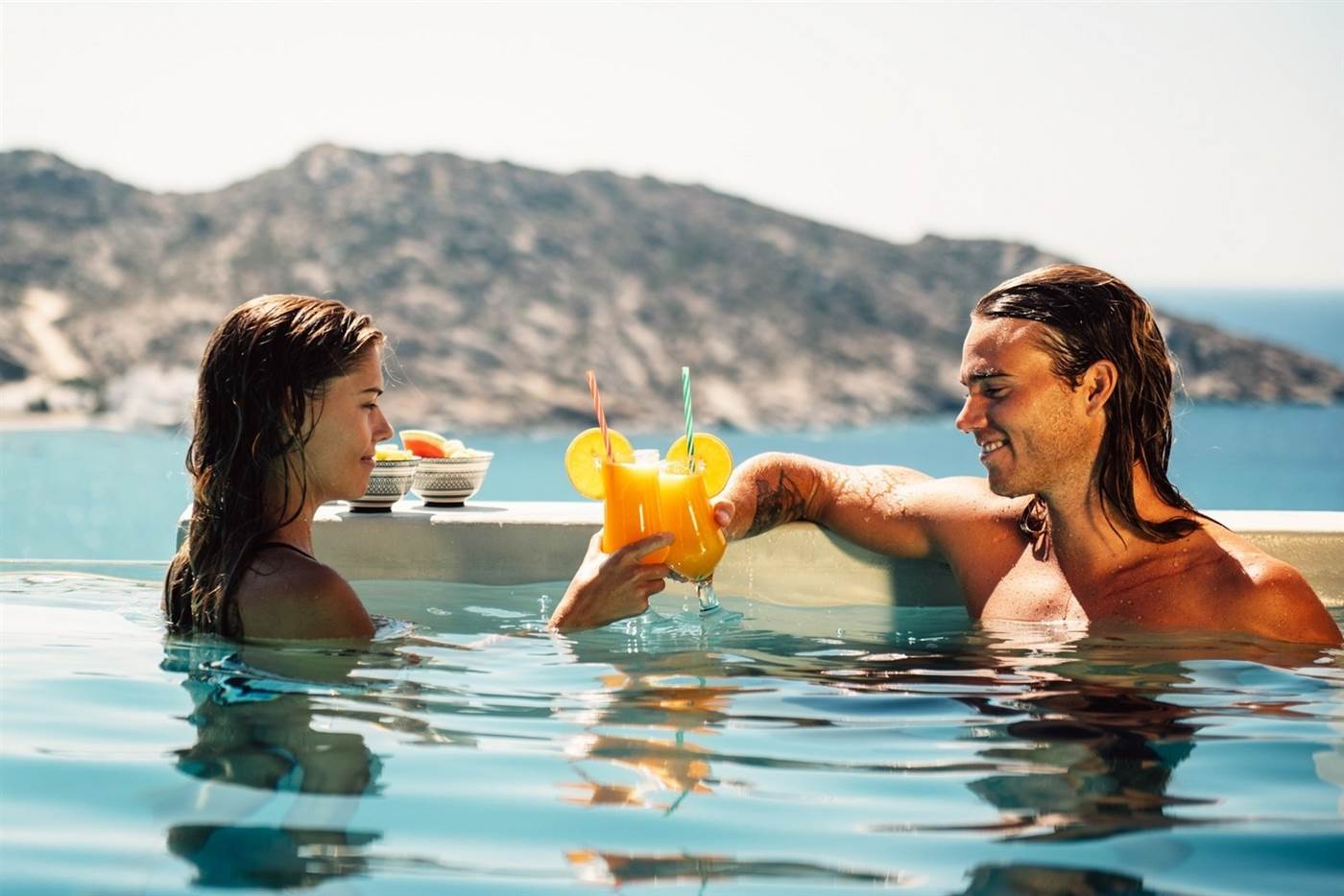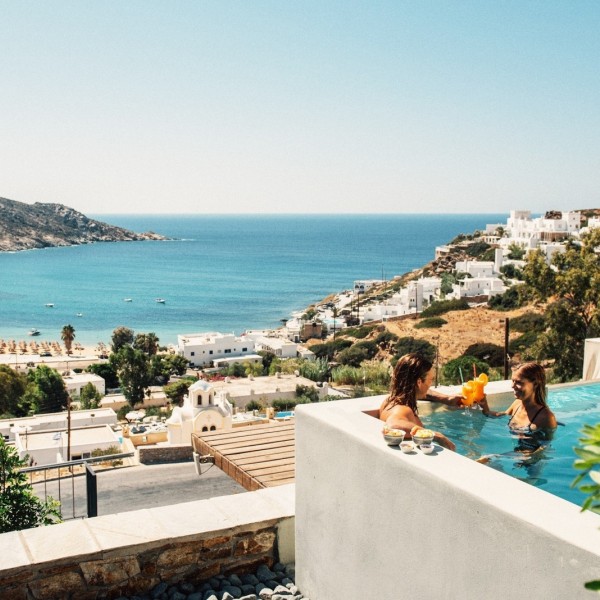 Su una collina proprio sopra la spiaggia di Mylopota premiata, con vista sulle acque scintillanti dell'Egeo, Hideout Suites è un complesso cicladico bianco cicladico di 12 suite di lusso, ne hanno una con la loro piscina privata di Veranta e nuoto.