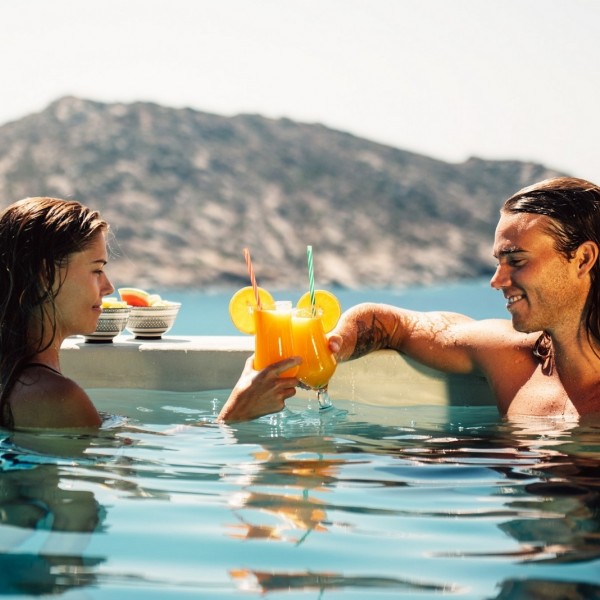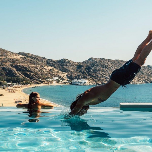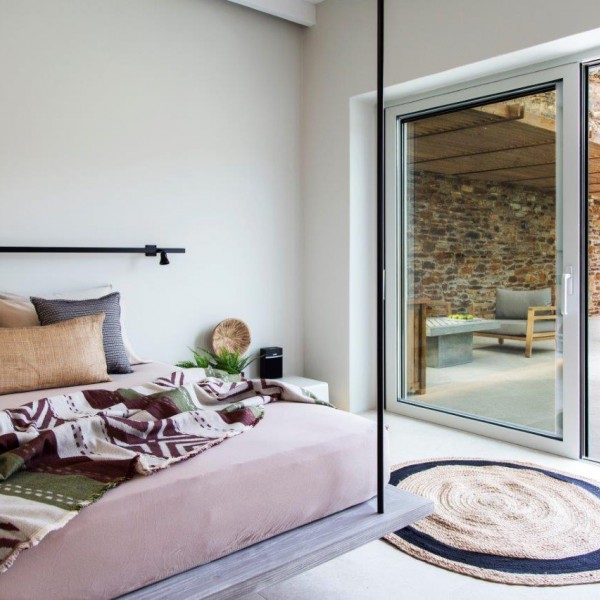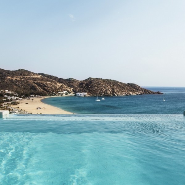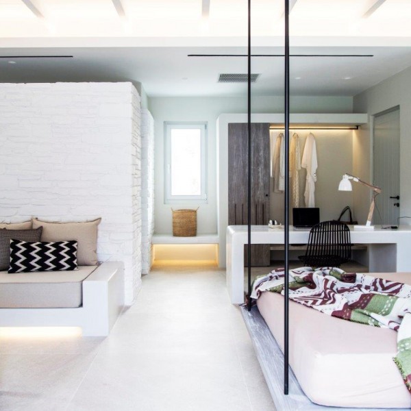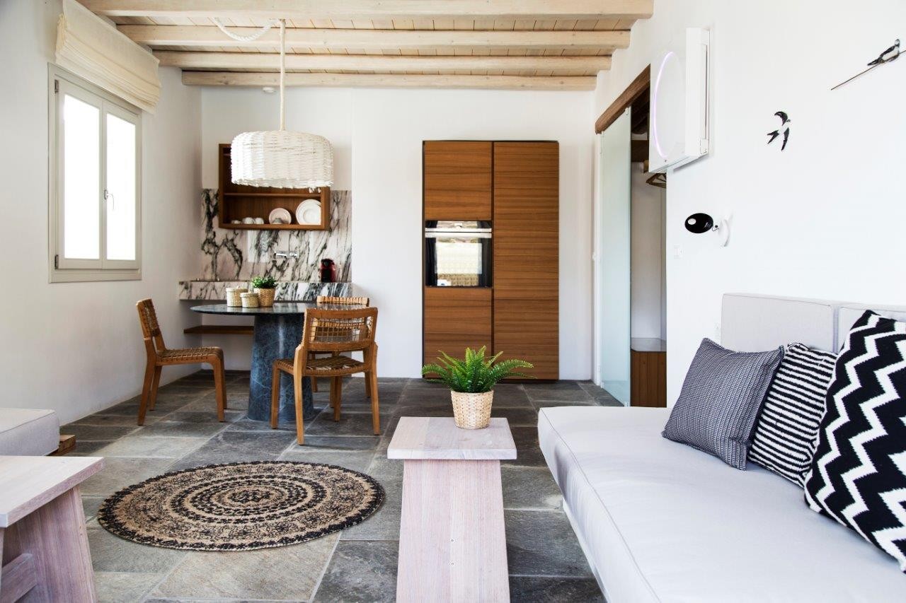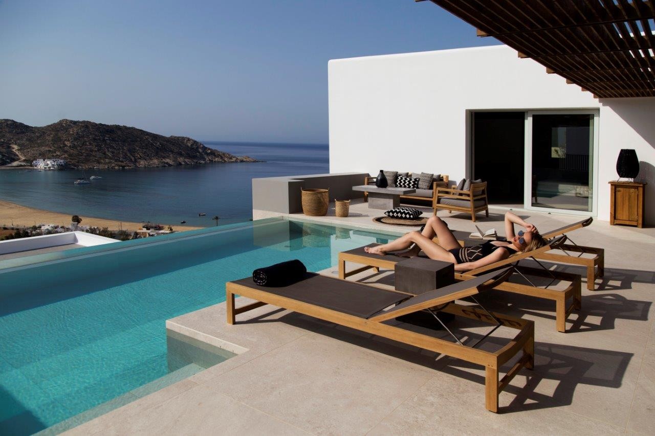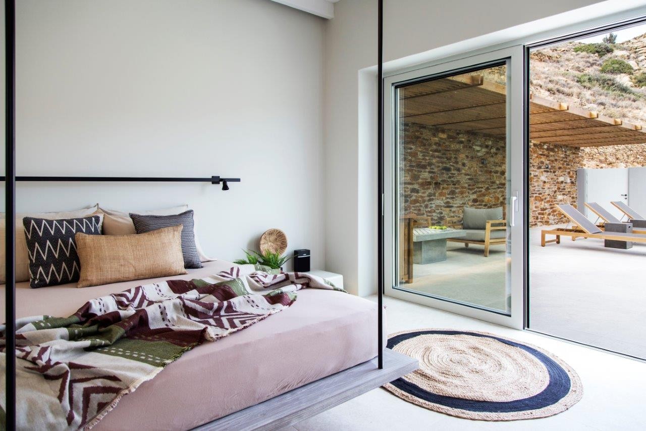 Su una collina proprio sopra la spiaggia di Mylopota premiata, con vista sulle acque scintillanti dell'Egeo, Hideout Suites è un complesso cicladico bianco cicladico di 12 suite di lusso, ne hanno una con la loro piscina privata di Veranta e nuoto.