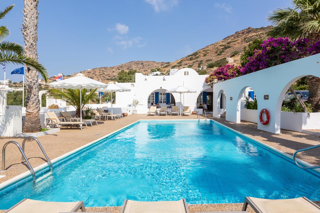 Provvista di un parcheggio privato gratuito, la struttura sorge a circa 5 km dal villaggio e dal porto di Ios.