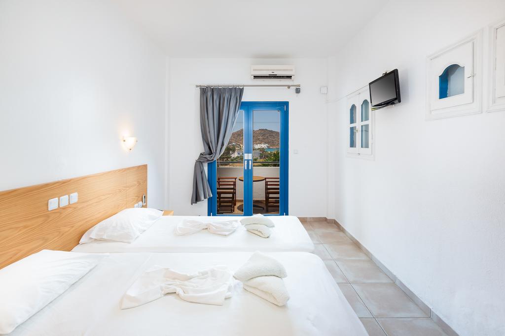 Situato a 150 metri dalla spiaggia, il Marcos Beach di Mylopotas è una struttura in stile cicladico, che vanta una piscina all'aperto, una terrazza solarium, la connessione Wi-Fi gratuita nelle aree comuni e camere con balcone affacciato sul Mar Egeo.