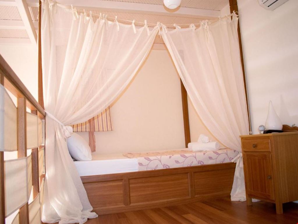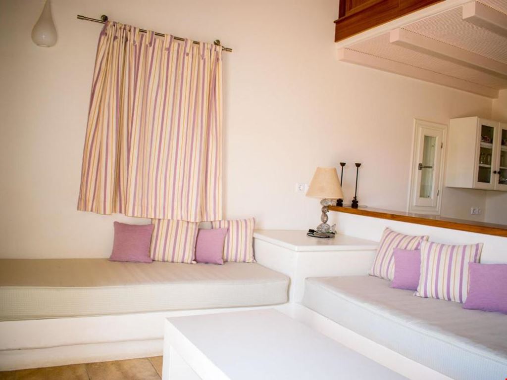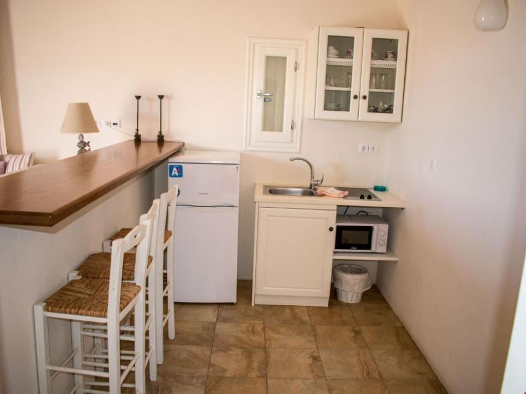 Decorati in stile tradizionale con soffitti con travi a vista, tutti gli appartamenti e le camere si aprono su un balcone con vista mare e arredi da esterno. TV a schermo piatto e frigorifero, mentre gli appartamenti sono dotati di angolo cottura. Il bagno privato è completo di vasca o doccia.