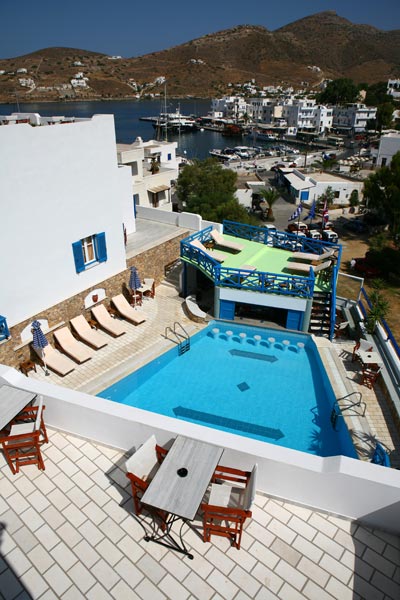 Dotato di una piscina all'aperto, il Poseidon Hotel dista appena 300 metri dalla spiaggia di Ios e 50 metri dal porto di Ios. Tutte le camere sono dotate di aria condizionata, riscaldamento e frigorifero.