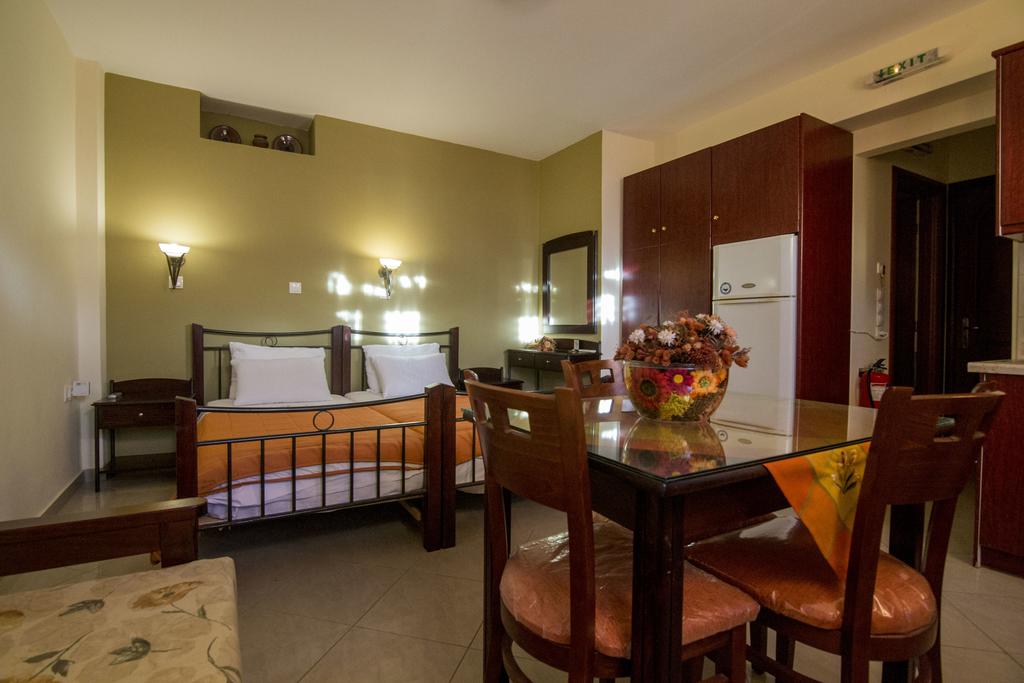 I monolocali e gli appartamenti dell'Alkioni Hotel sono climatizzati e comprendono un ampio soggiorno, una spaziosa zona pranzo e un angolo cottura ben attrezzato. Tutte le sistemazioni dispongono di TV satellitare, cassaforte, ferro da stiro, asciugacapelli e balcone privato con vista panoramica sul mare.