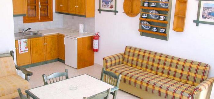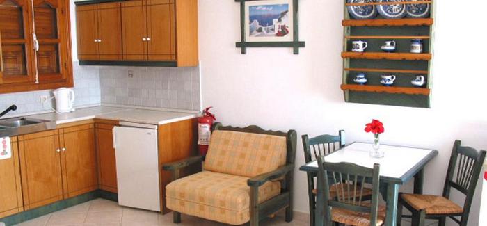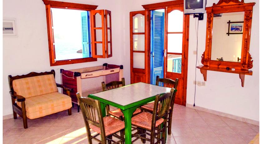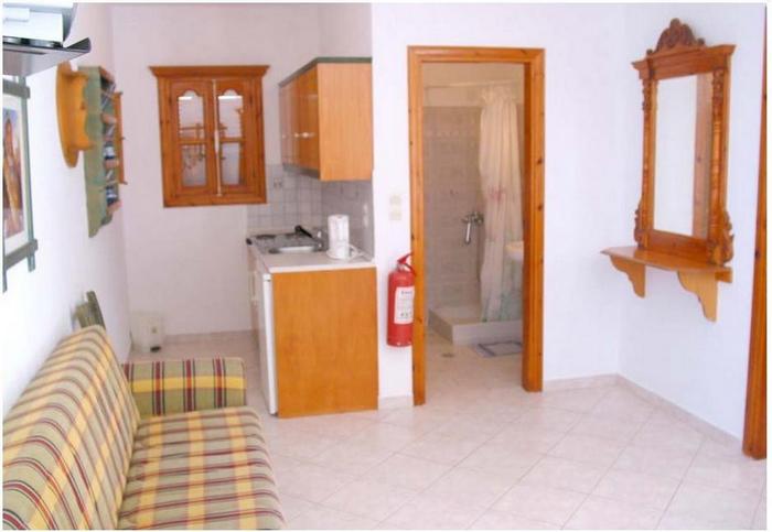 Tutti climatizzati, i monolocali e gli appartamenti dell'Arhontiko includono arredi in legno e, nella maggior parte dei casi, tradizionali letti da incasso di Karpathos. Sono tutti dotati di angolo cottura ben attrezzato, TV satellitare, set da stiro e bagno con asciugacapelli.