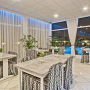 Sala per la prima colazione con servizio a buffet, lobby bar. A pagamento: settimanalmente, cena barbecue a bordo piscina.