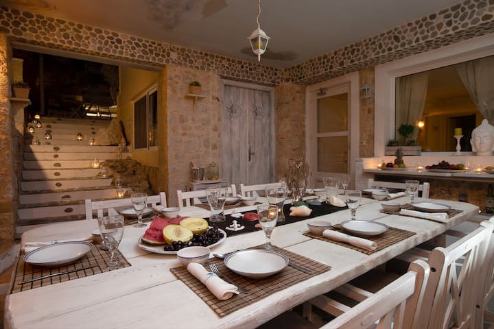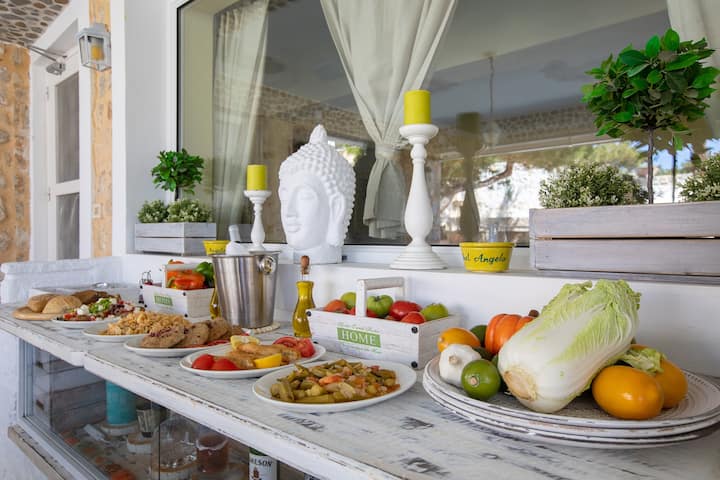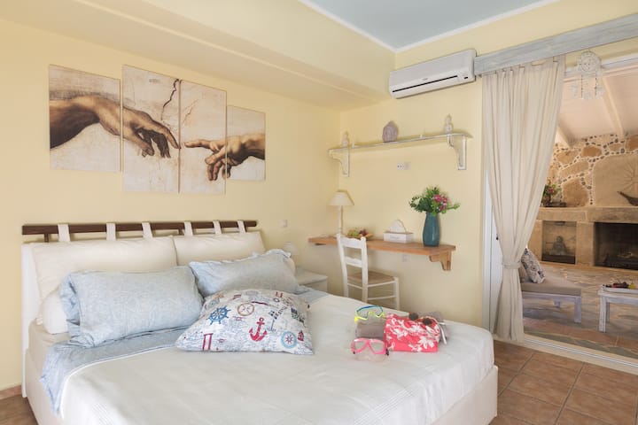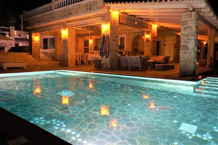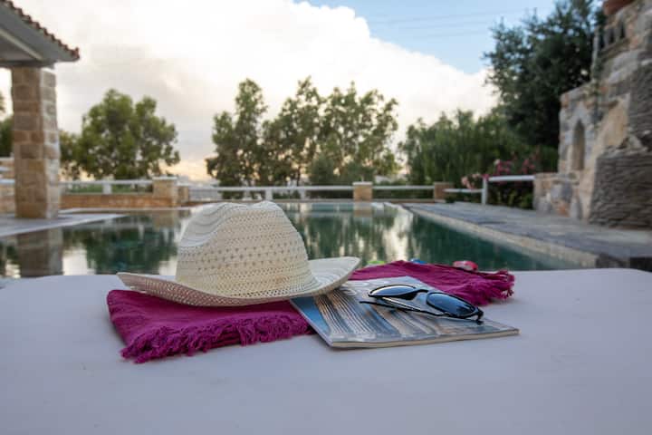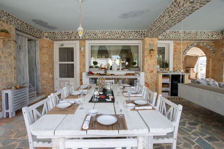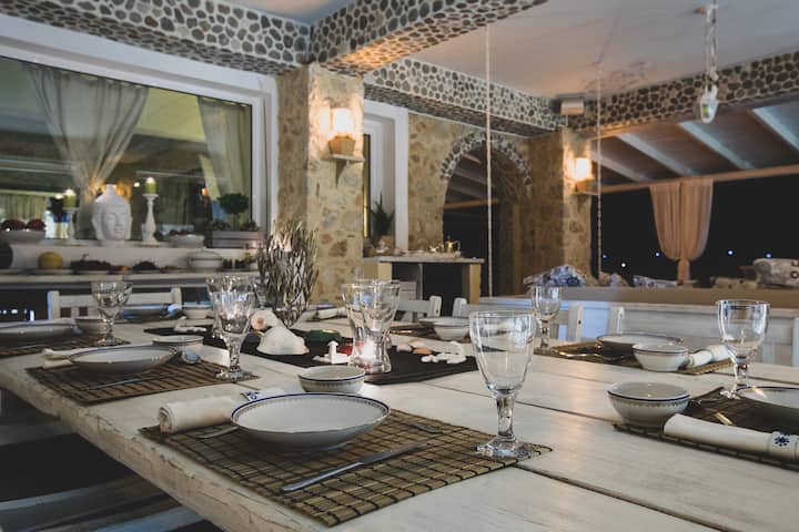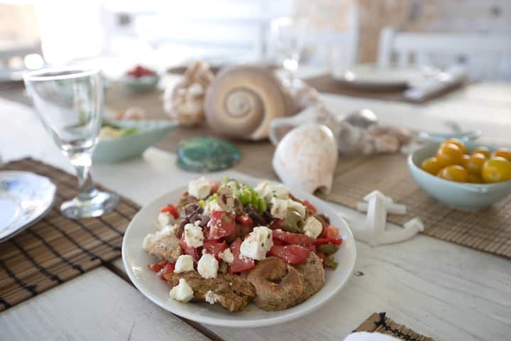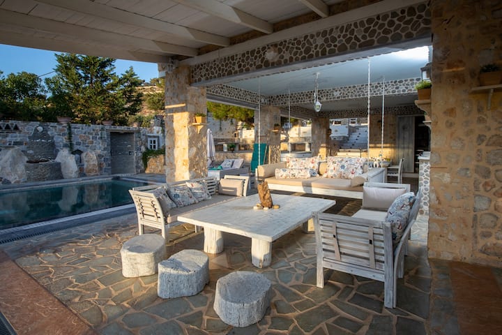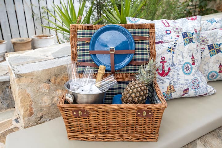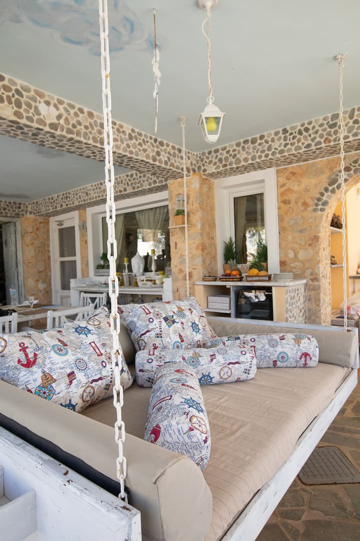Lasciati immergere nella piscina o nelle onde cristalline di una delle spiagge vicine. Lasciati deliziare dalla luce del sole sulle terrazze e ritirati su un'amaca per un drink rinfrescante nella brezza. Approfittate delle aree pranzo all'aperto, cucinate da soli o chiedeteci di prepararvi grigliate e pasti tradizionali greci, e gustateli all'aperto nella splendida veranda, accompagnati da una bottiglia di vino greco refrigerato.