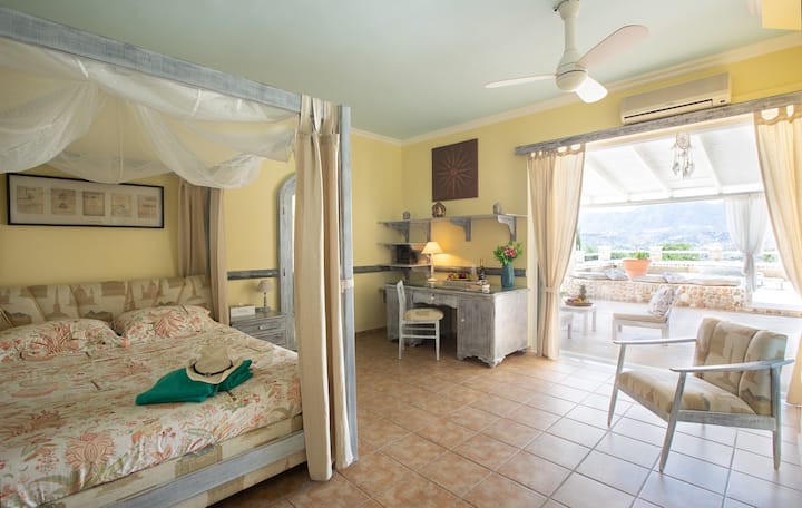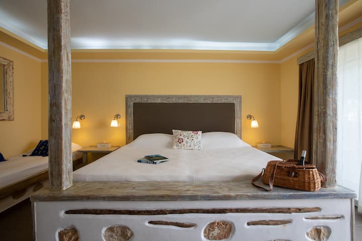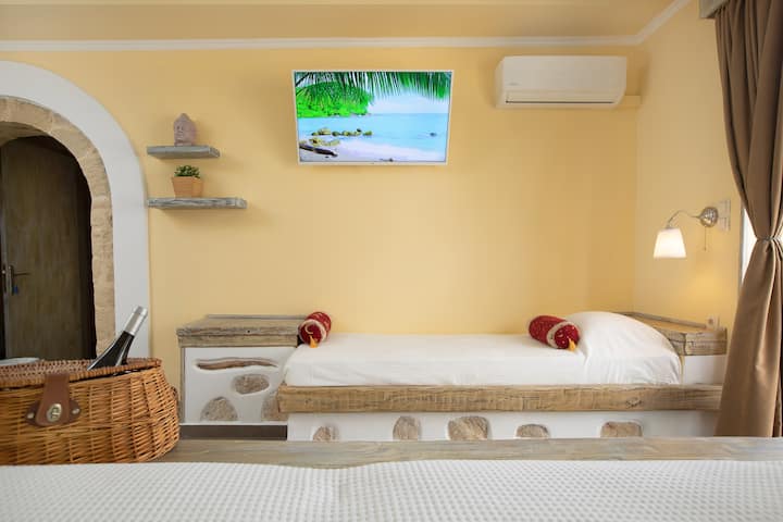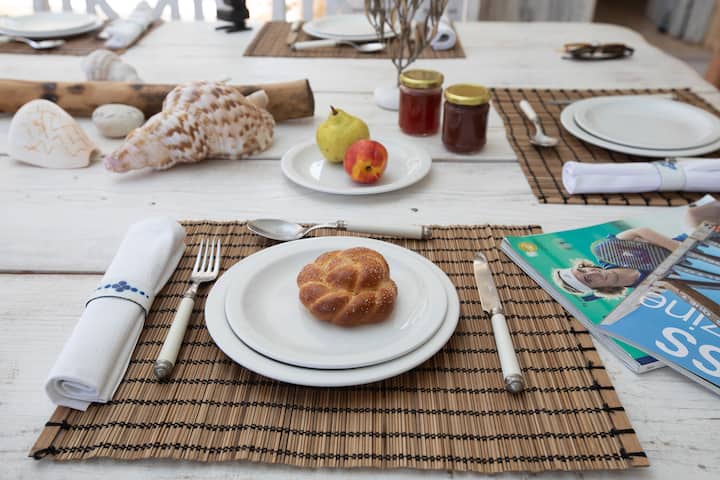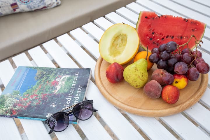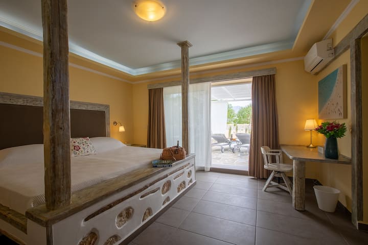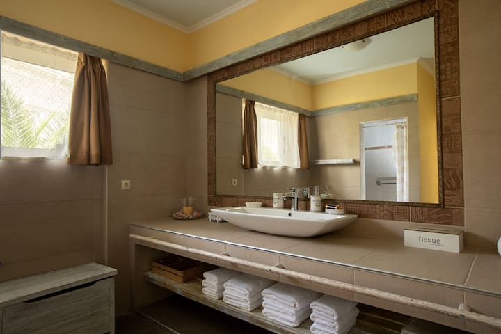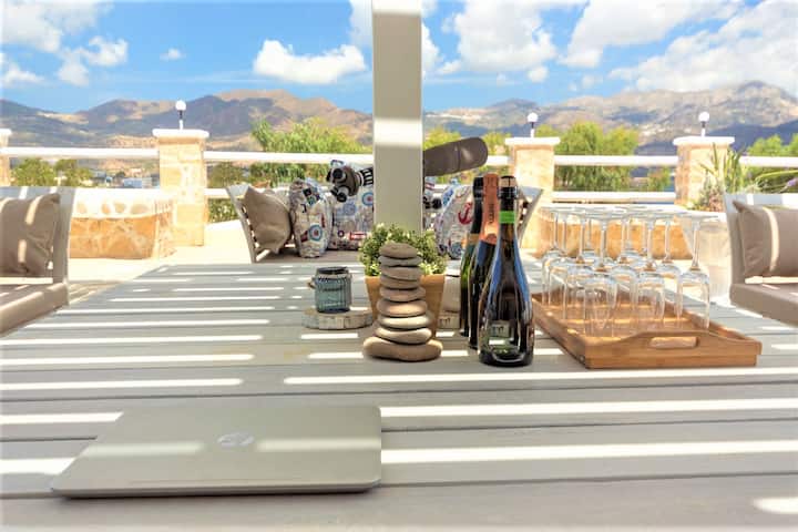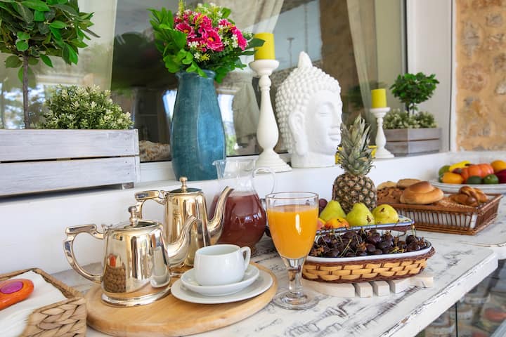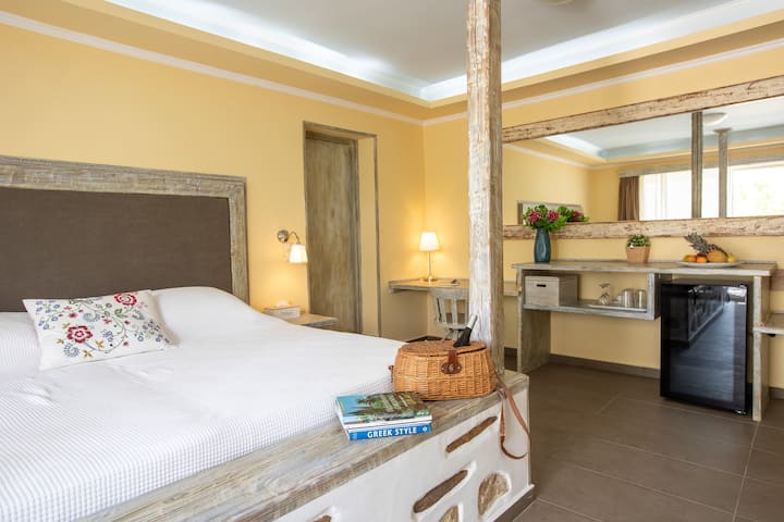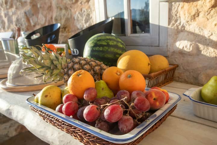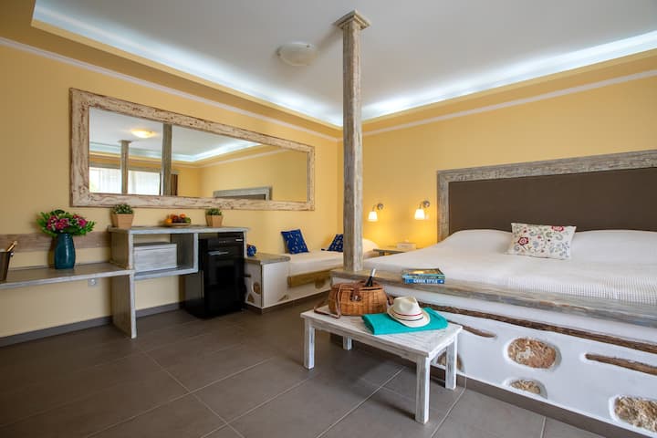 Lasciati immergere nella piscina o nelle onde cristalline di una delle spiagge vicine. Lasciati deliziare dalla luce del sole sulle terrazze e ritirati su un'amaca per un drink rinfrescante nella brezza. Approfittate delle aree pranzo all'aperto, cucinate da soli o chiedeteci di prepararvi grigliate e pasti tradizionali greci, e gustateli all'aperto nella splendida veranda, accompagnati da una bottiglia di vino greco refrigerato.