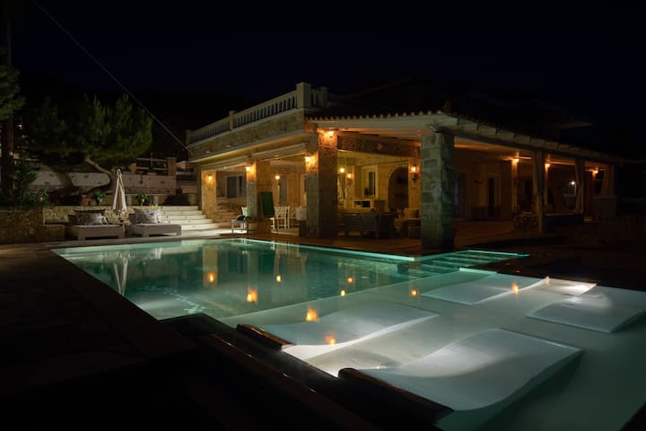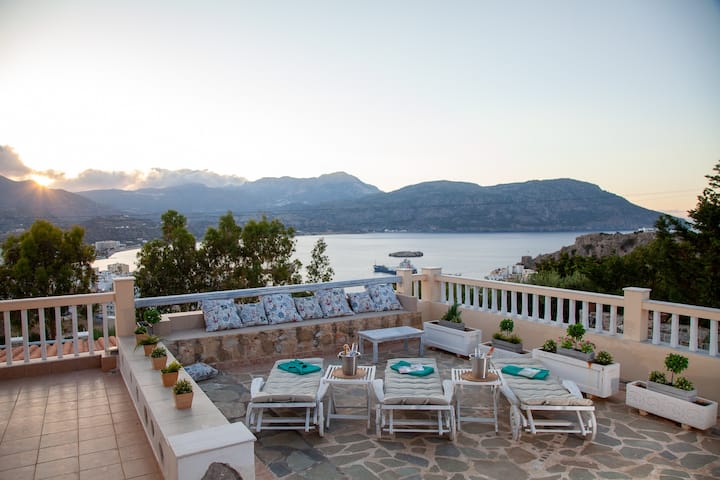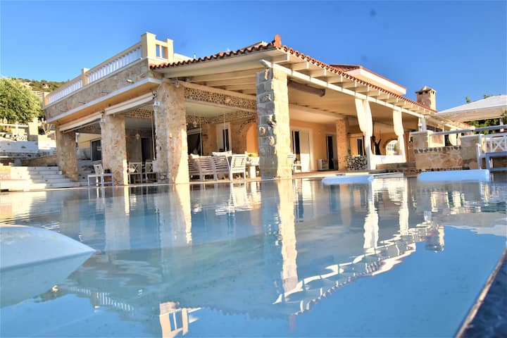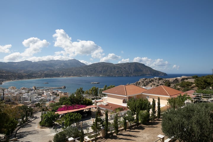 La villa è una spettacolare villa sulla costa sud-orientale dell'isola di Karpathos, nella regione della città di Pigadia. La tenuta è situata direttamente sulle colline coperte di pini secolari che dominano la città di Pigadia.