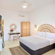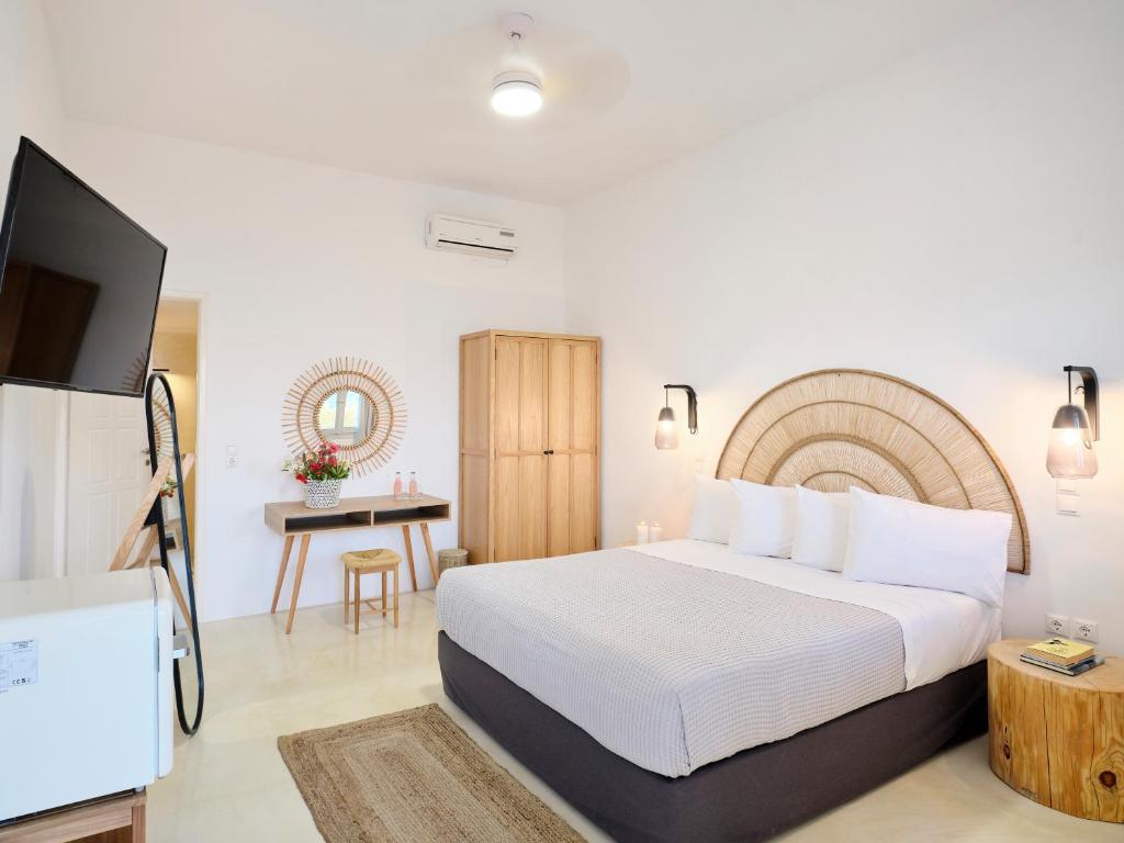 L'albergo, piccolo e tranquillo, consta di tre camere che differiscono fra loro soltanto in base al criterio della capienza massima. Ci sono, quindi, due camere doppie ed una camera tripla, in realtà esteticamente molto simili ed equipaggiate allo stesso modo, non fosse per la poltrona letto presente in una di esse. Per il resto, tutti gli alloggi dispongono di una camera con letto matrimoniale COCO-MAT®; di un bagno con doccia in muratura, asciugacapelli e prodotti in omaggio; di terrazza con vista mare e spiaggia; di frigorifero, bollitore, scrivania, cassaforte, aria condizionata, connessione internet Wi-Fi, parcheggio gratuito. Colazione e servizio di pulizia giornaliera inclusi nel prezzo.