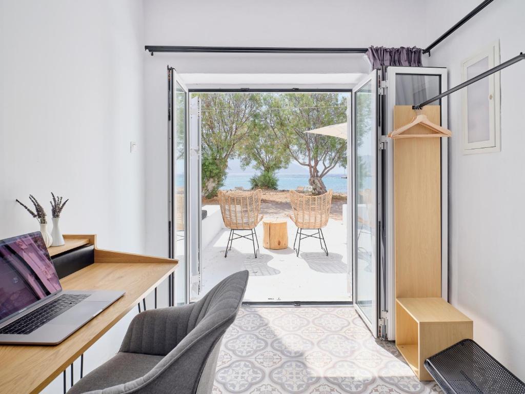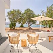 Psathi Beach House dispone di un'incantevole e ampia terrazza fronte mare con salotto e sala da pranzo integrati. Nella spiaggia antistante vengono messi a disposizione lettini per l'uso privato dei residenti.