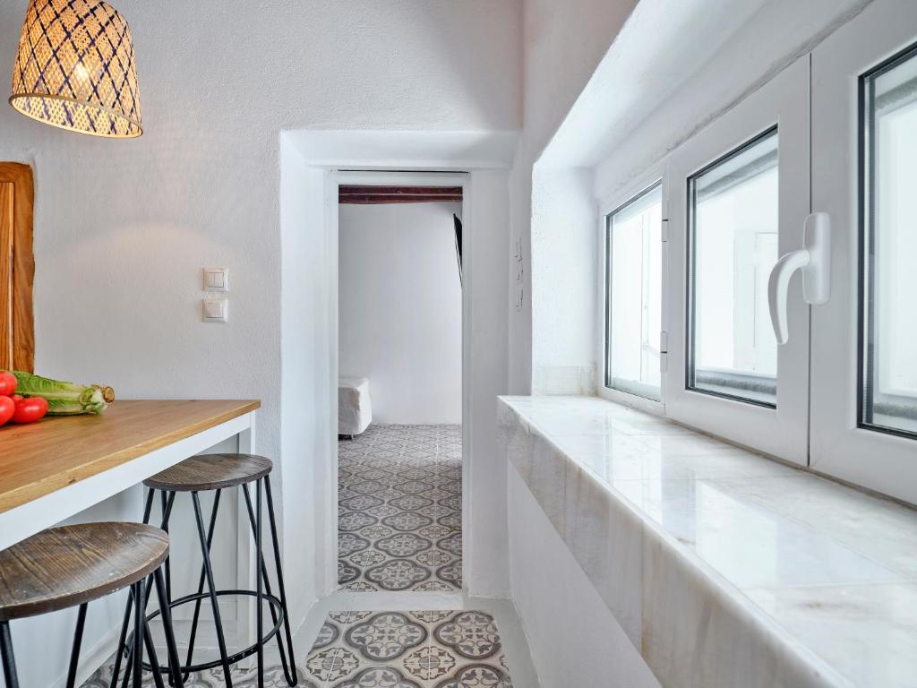 Rispettando il carattere tradizionale della casa e l'architettura delle Cicladi, la struttura ha mantenuto le caratteristiche iniziali e dispone di un bagno con doccia in un edificio separato, accanto alla residenza principale ed è accessibile attraverso il cortile sul retro della casa.
