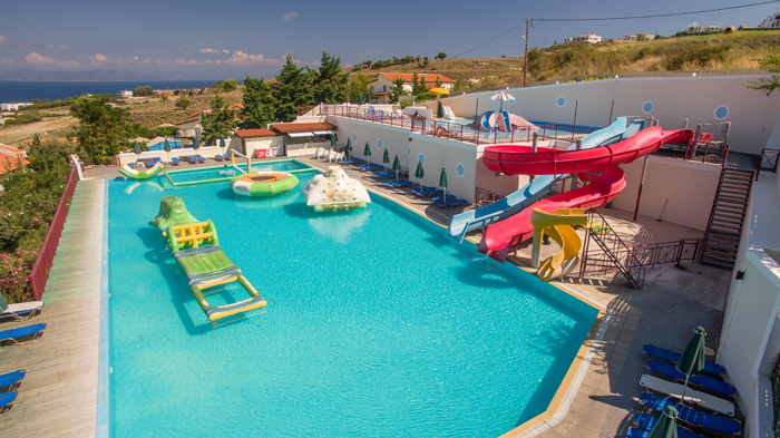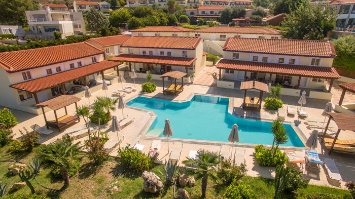 L'Aegean View dispone di 55 appartamenti, studio e suite che sono molto luminosi e arredati con gusto. Sono dotati di TV satellitare, cassaforte e asciugacapelli. La cucina dispone di un forno a microonde, un frigorifero e una macchinetta del caffè. La zona piscina dispone di lettini e ombrelloni. L'hotel comprende anche una sala fitness ben attrezzata. L'hotel dispone di un ristorante che serve piatti della cucina internazionale e greca e c'è anche un bar a bordo piscina che offre succhi di frutta fresca e cocktail. Vi è una reception aperta 24 ore, in grado di fornire informazioni sulle attrazioni dell'isola.