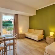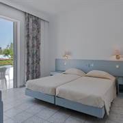Tutte le camere sono climatizzate e provviste di balcone con vista sul mare o sulla piscina e sul giardino, TV e connessione internet WiFi gratuita. Alcune sistemazioni presentano un angolo cottura con frigorifero e una macchina per il caffè.