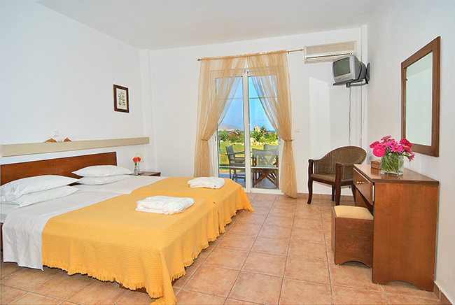 La camera ha due letti singoli o letto matrimoniale e portafinestra che conduce al giardino privato. Bagno con doccia in ogni appartameno,TV satellitare, cassaforte digitale e aria condizionata. Per coloro che vogliono usufruire della piscina ci sono 2 piscine della struttura accanto con libero accesso a solo 2 min a piedi, di fronte al mare. Ogni appartamento è spazioso e ospita fino a 4 persone.