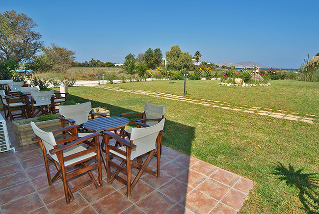 Una piccola strada privata, poco distante dalla strada lungomare, conduce all'appartamento immerso in un'area verde privata, in una zona tranquilla e riservata. La villa, di recente costruzione, è situata in una posizione privilegiata di fronte alla bellissima spiaggia di sabbia di Tigaki.