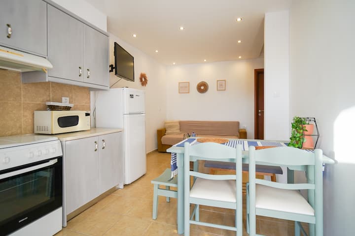 Situato a Kámpos, nella regione del Dodecaneso, nelle vicinanze delle spiagge di Paralia Kefalos e Agios Stefanos,  offre sistemazioni con parcheggio privato gratuito. L'alloggio climatizzato si trova a 2,3 km dalla Camel Beach. L'appartamento dispone di camere familiari.