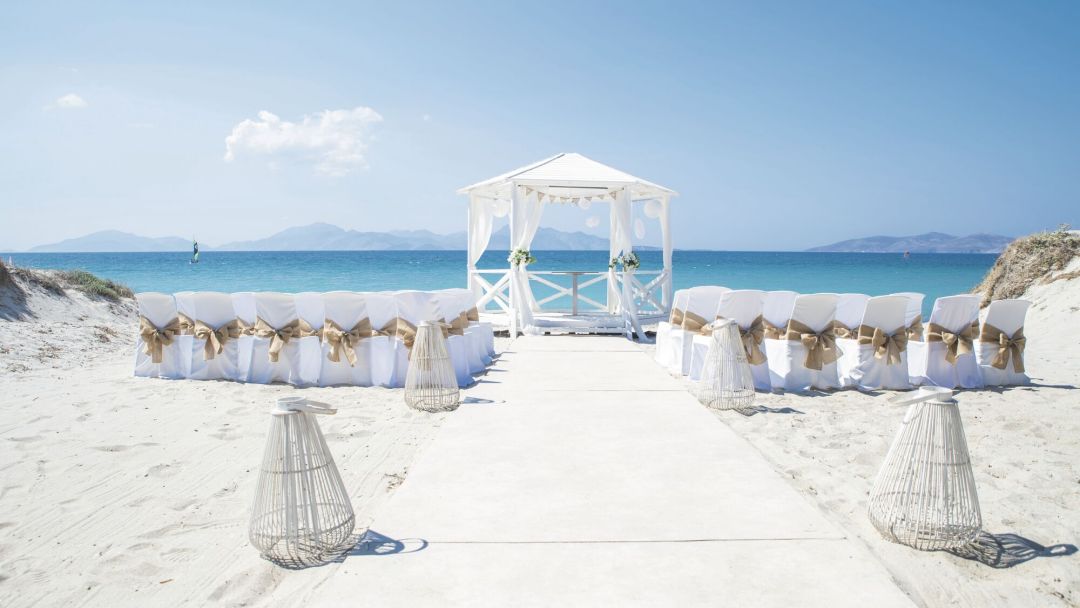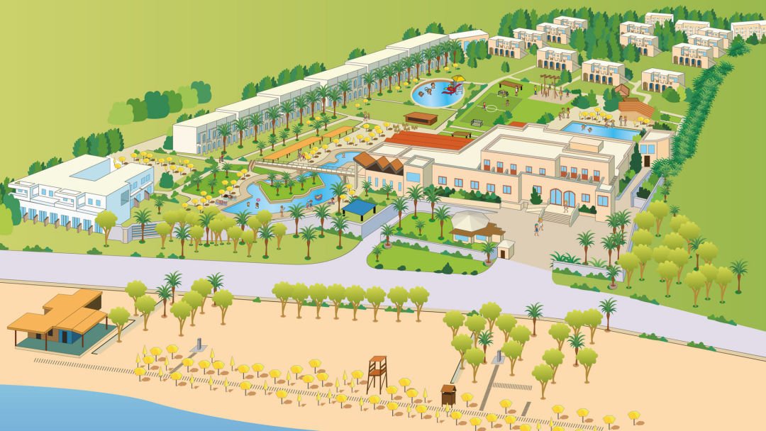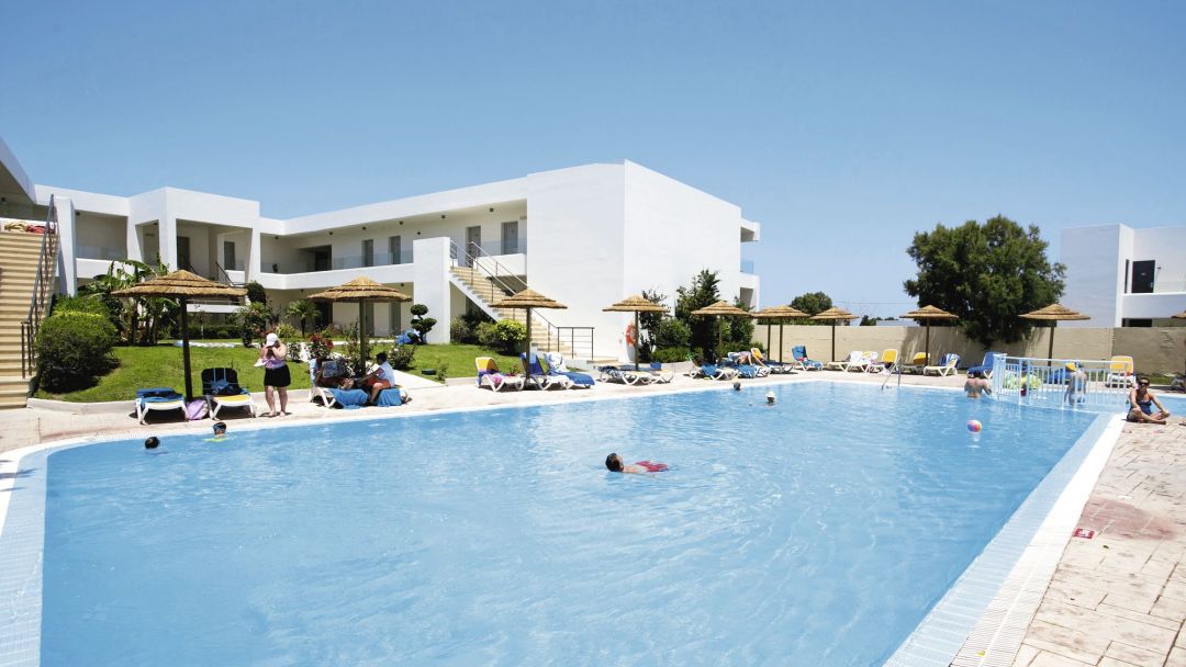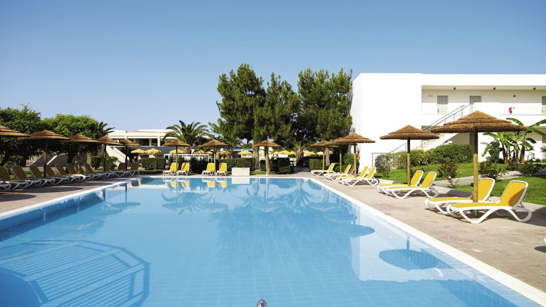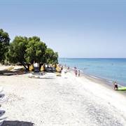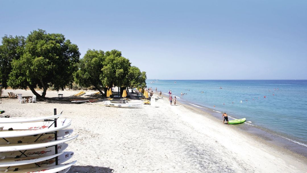 Una grande spiaggia si trova dall'altra parte della strada presso l'Holiday Village Atlantica Kos. Ci sono lettini e un centro per gli sport acquatici sulle sabbie, oppure si può passeggiare nella direzione opposta verso i bar e i ristoranti di Marmari.