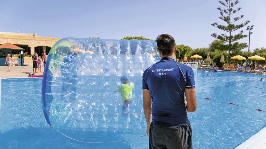 Di giorno, ci sono tre piscine in cui sguazzare, oppure puoi unirti a tiro con l'arco, pallavolo e calcio. Dopo il tramonto, gli spettacoli si svolgono nell'anfiteatro, mentre i cocktail vengono serviti al bar per soli adulti.