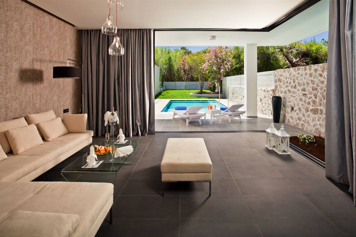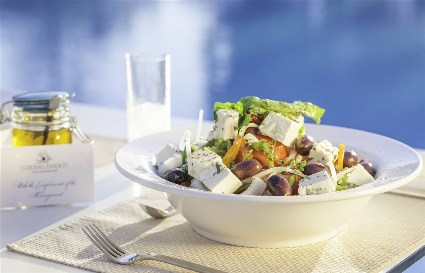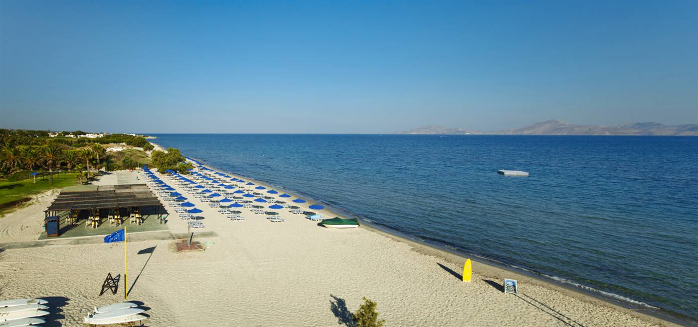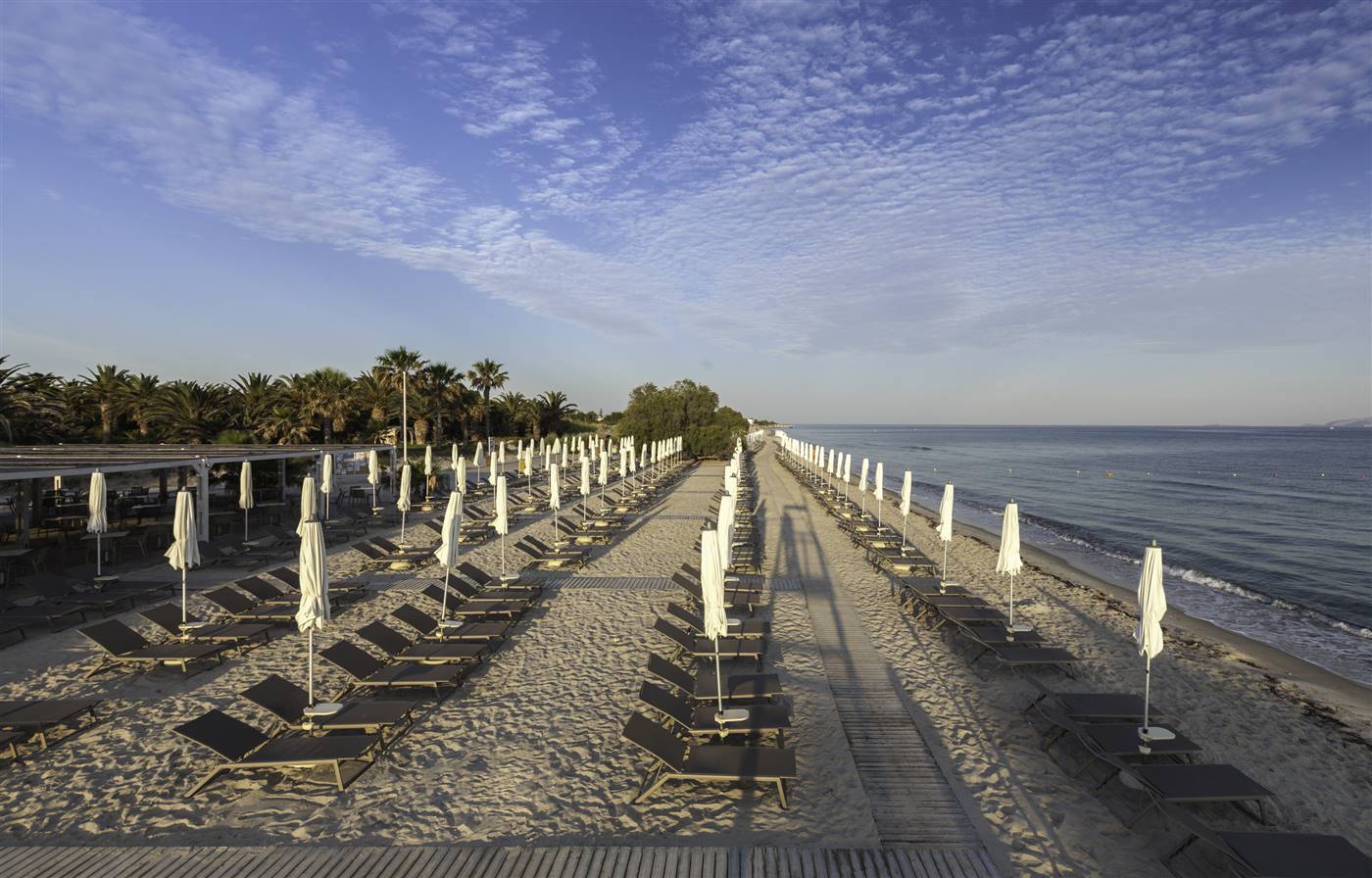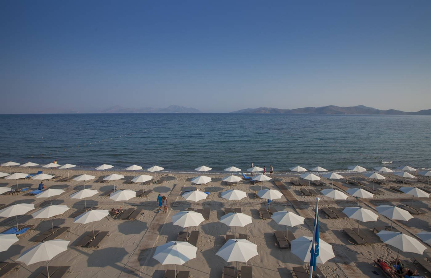 Caravia Beach Hotel sorge direttamente su una incantevole spiaggia ampia, sabbiosa e attrezzata con lettini e ombrelloni per tutti i suoi ospiti.