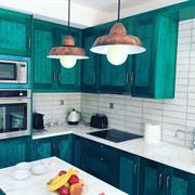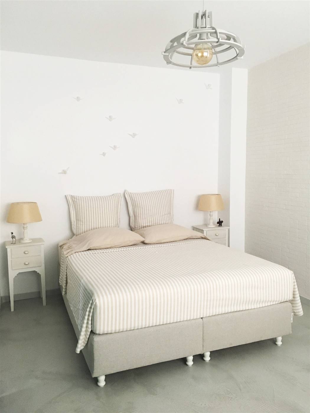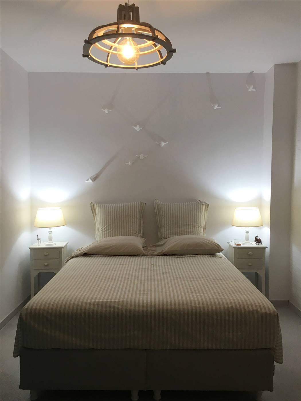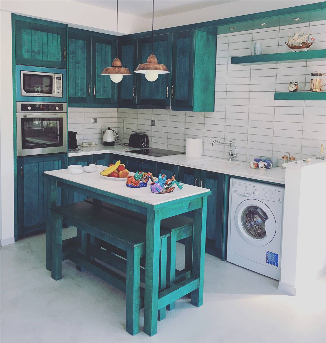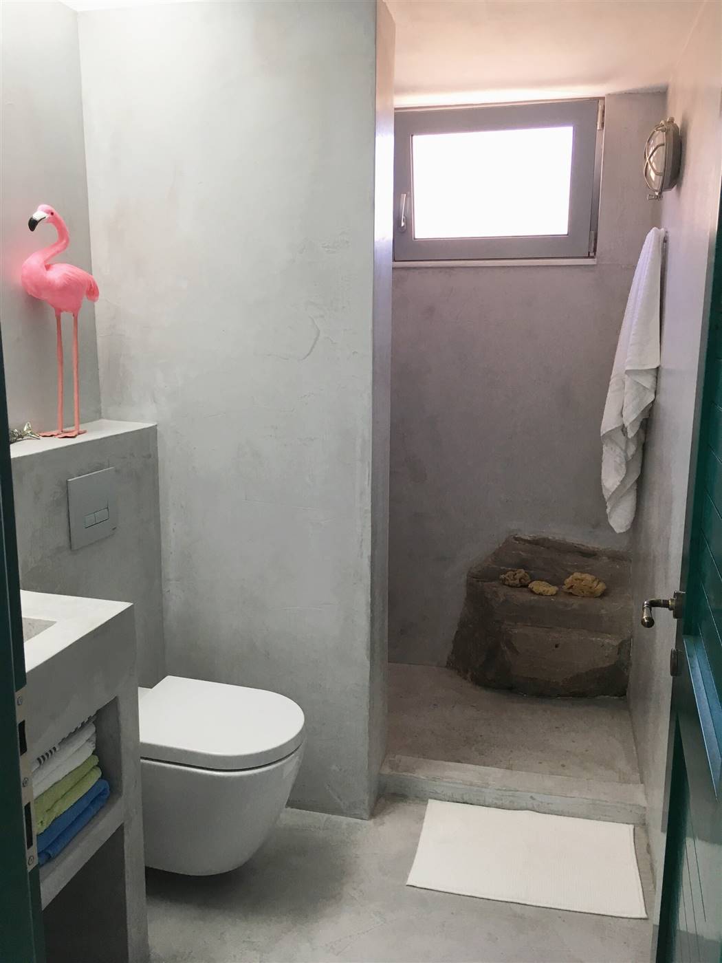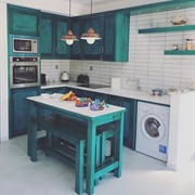 L'appartamento sarebbe è molto adatto alle coppie. Lo spazio L'appartamento ha una grande terrazza con un pergolato e con una grande finestra di accesso a una cucina a pianta aperta e una zona salotto. I pavimenti sono interamente in cemento e tutti gli arredi, compresa la cucina, gli armadi e le ante, sono realizzati a mano in colore turchese. La cucina è completamente attrezzata con forno, microonde, lavatrice, frigorifero, bollitore, macchina per caffè espresso e tostapane con piani di lavoro in marmo e lavandino. Nella proprietà sono disponibili anche bicchieri, tazze, piatti e posate. Ti verranno forniti lenzuola e asciugamani puliti e un servizio di pulizia ogni 3-4 giorni a seconda della durata del soggiorno.