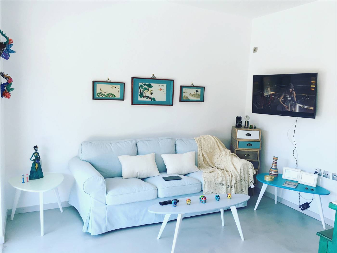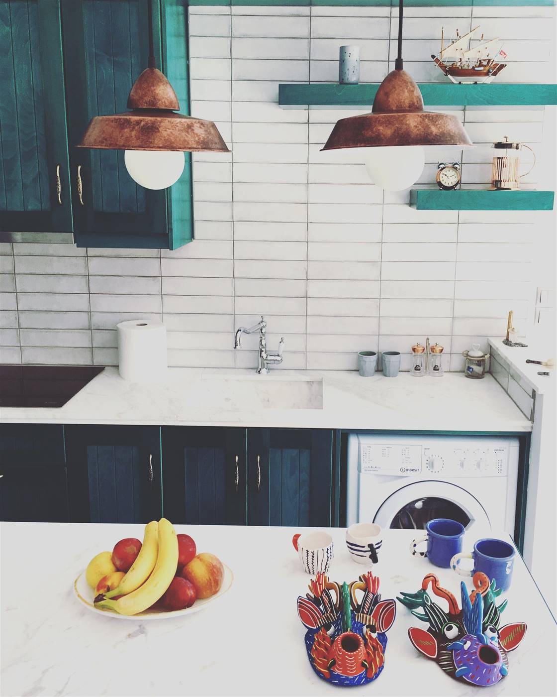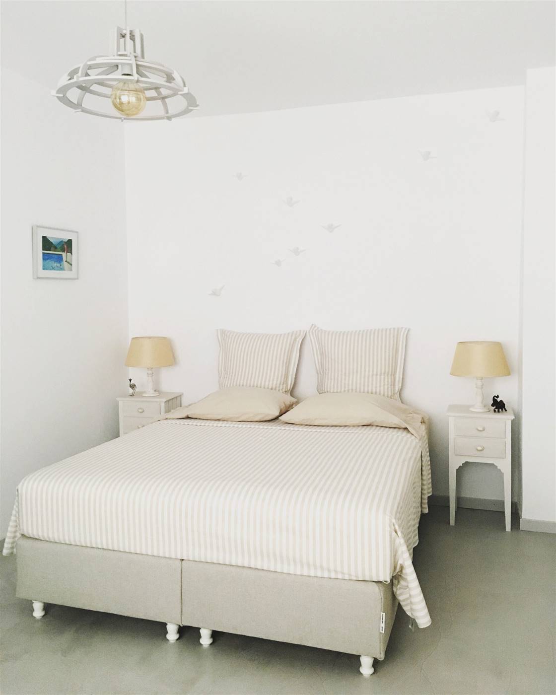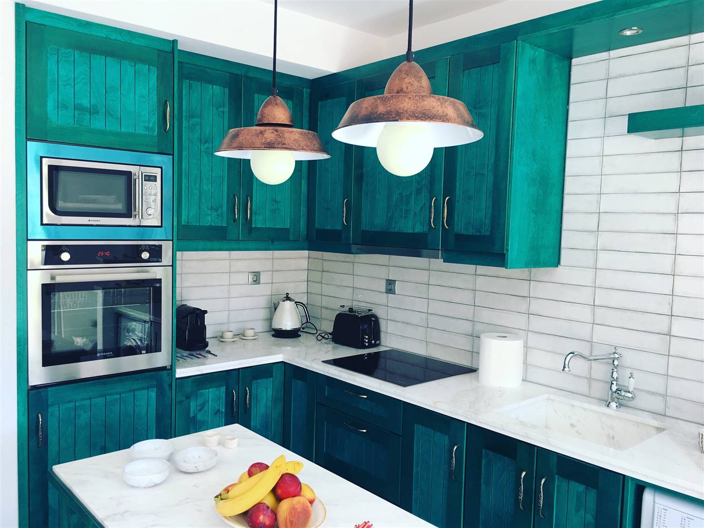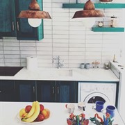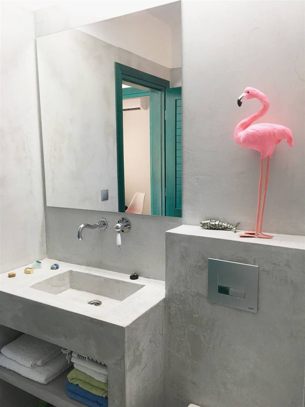 L'appartamento sarebbe è molto adatto alle coppie. Lo spazio L'appartamento ha una grande terrazza con un pergolato e con una grande finestra di accesso a una cucina a pianta aperta e una zona salotto. I pavimenti sono interamente in cemento e tutti gli arredi, compresa la cucina, gli armadi e le ante, sono realizzati a mano in colore turchese. La cucina è completamente attrezzata con forno, microonde, lavatrice, frigorifero, bollitore, macchina per caffè espresso e tostapane con piani di lavoro in marmo e lavandino. Nella proprietà sono disponibili anche bicchieri, tazze, piatti e posate. Ti verranno forniti lenzuola e asciugamani puliti e un servizio di pulizia ogni 3-4 giorni a seconda della durata del soggiorno.