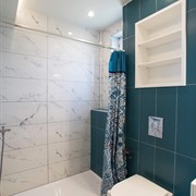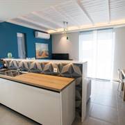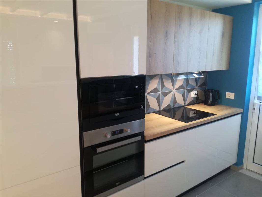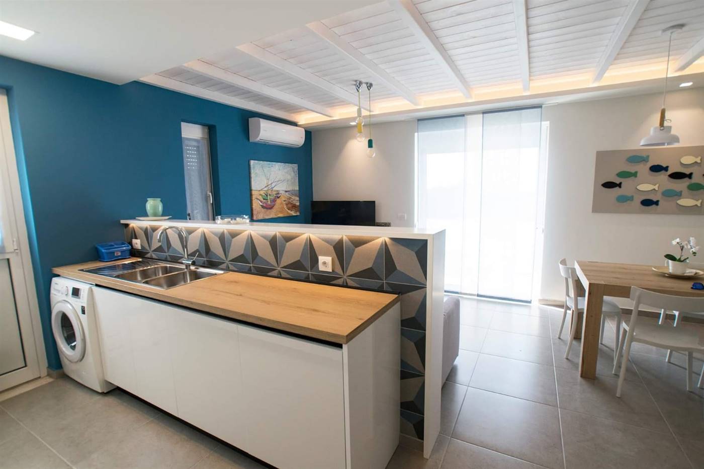 Nell'appartamento è presente un cucina completamente attrezzata. Sono presenti inoltre tre balconi, di cui uno nella zona frontale vista mare.