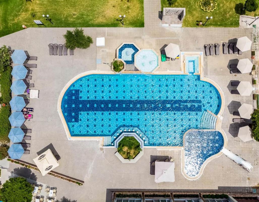 Il ristorante serve una colazione a buffet, pranzi e cene a base di piatti greci e mediterranei, mentre il bar semi-sommerso propone cocktail e drink rinfrescanti. La proprietà ospita inoltre un minimarket con tutti i beni di prima necessità.