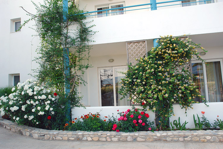 Gli alloggi, divisi in monolocali e appartamenti, si aprono su un balcone con vista sulle montagne e sul giardino e sono tutti dotati di aria condizionata, TV satellitare, angolo cottura con frigorifero, bollitore elettrico e tavolo da pranzo.
