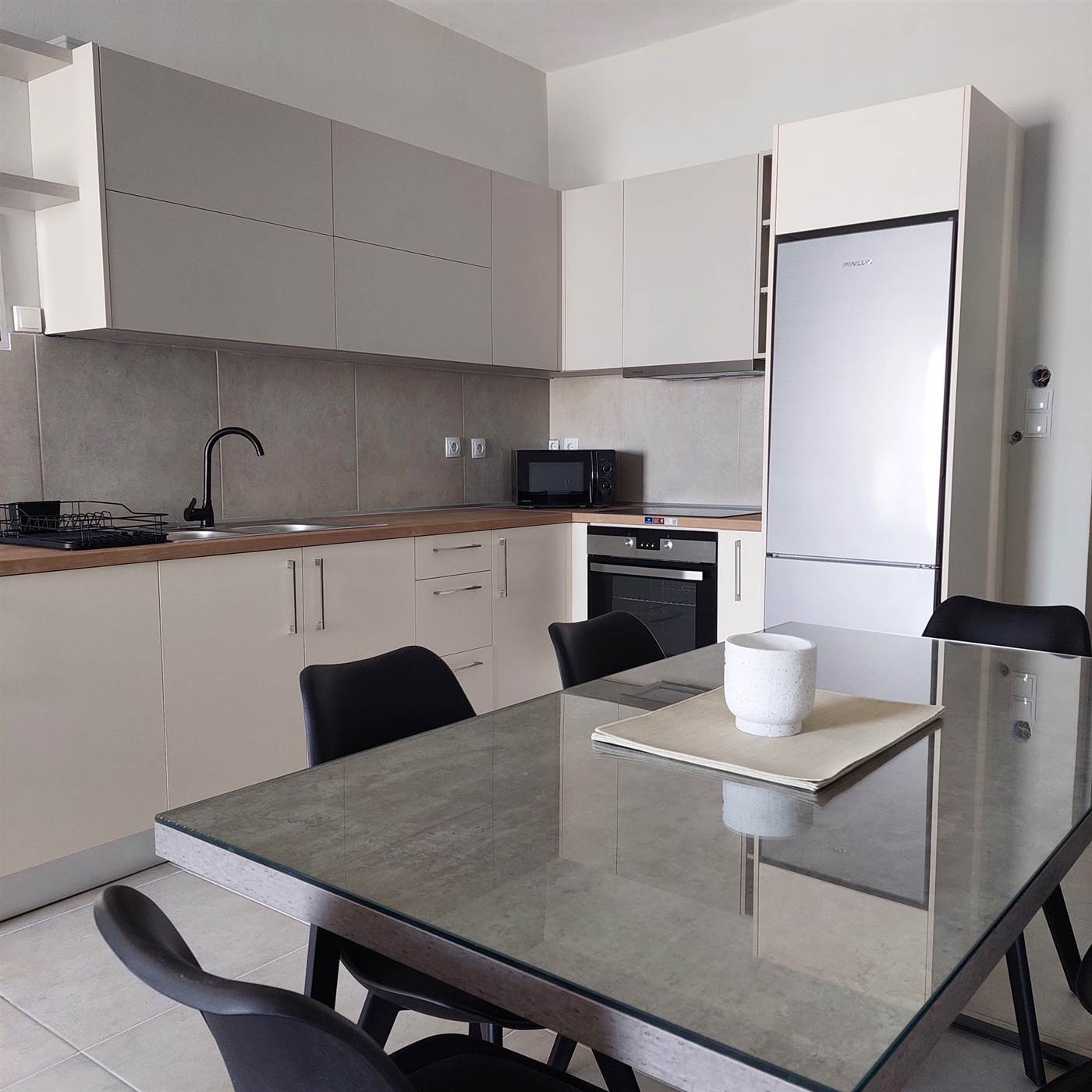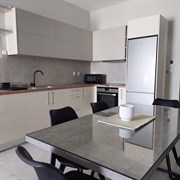 L'appartamento presenta un balcone, 2 camere da letto, un soggiorno e una cucina ben attrezzata con frigorifero e forno a microonde. Gli asciugamani e la biancheria da letto sono inclusi nell'appartamento.
