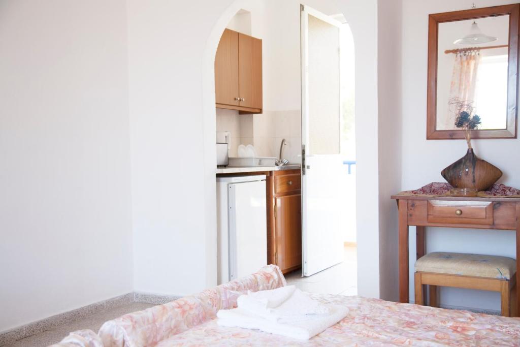 I monolocali del Maritsa, ampi e luminosi, presentano tutti un angolo cottura con frigorifero, bollitore elettrico e tostapane e un bagno privato dotato di doccia.