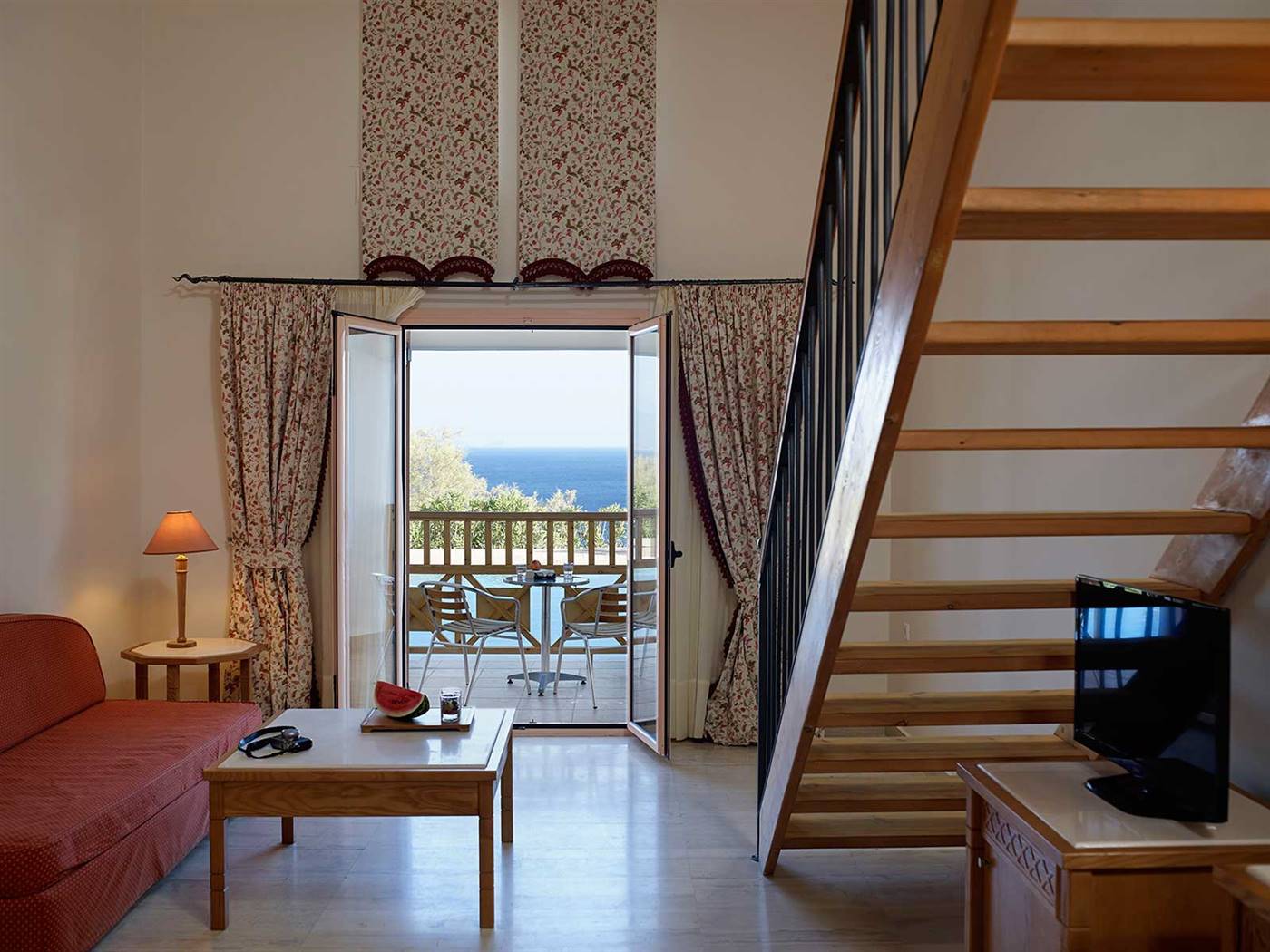 Elegantemente arredate con colori mediterranei, le camere offrono una vista sulle montagne o sul mare e dispongono di aria condizionata e bagno privato completo di asciugacapelli. Alcune presentano anche un angolo cottura.