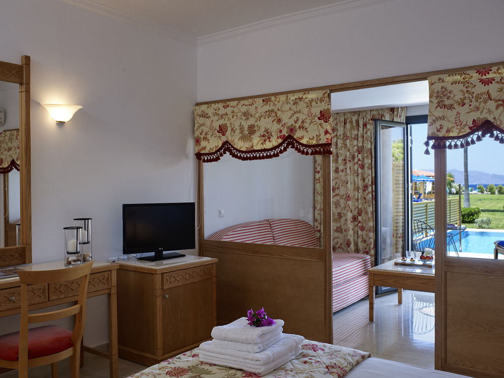 Le contemporanee camere comprendono l'aria condizionata, una TV a schermo piatto con canali satellitari, un mini frigorifero, un balcone o terrazzo con mobili da giardino e un minibar gratuito ben fornito.
