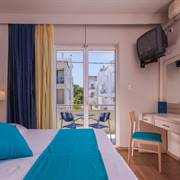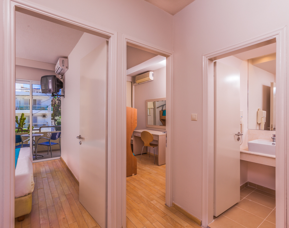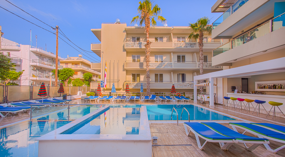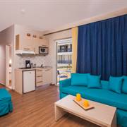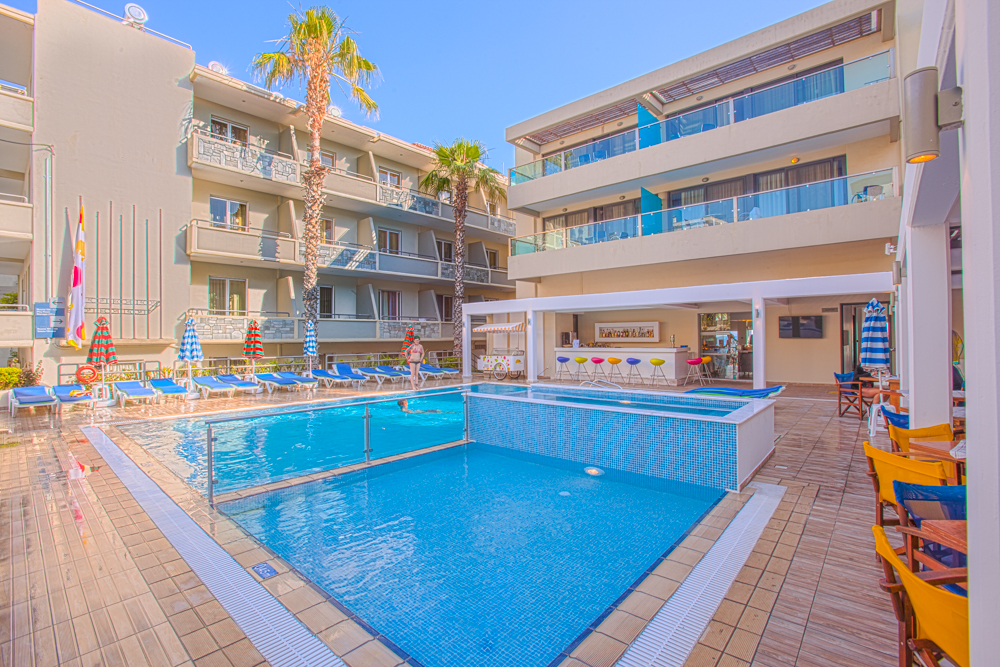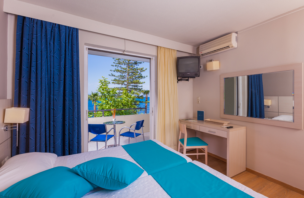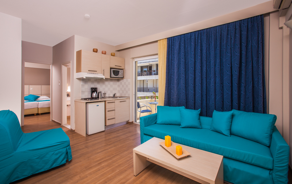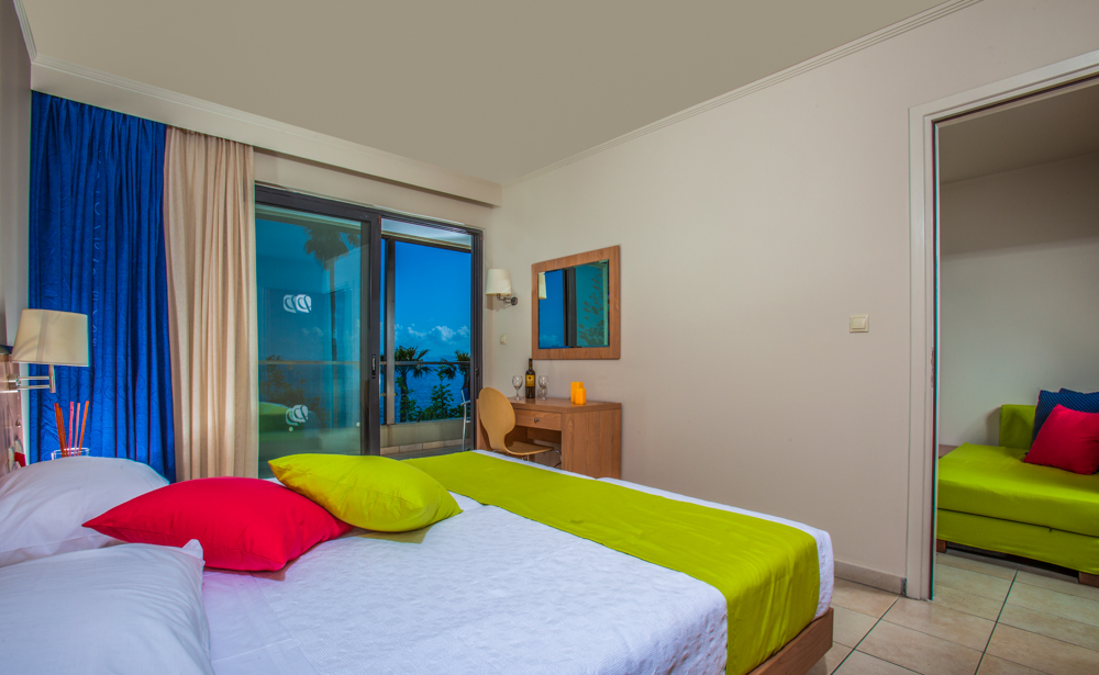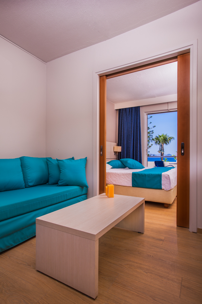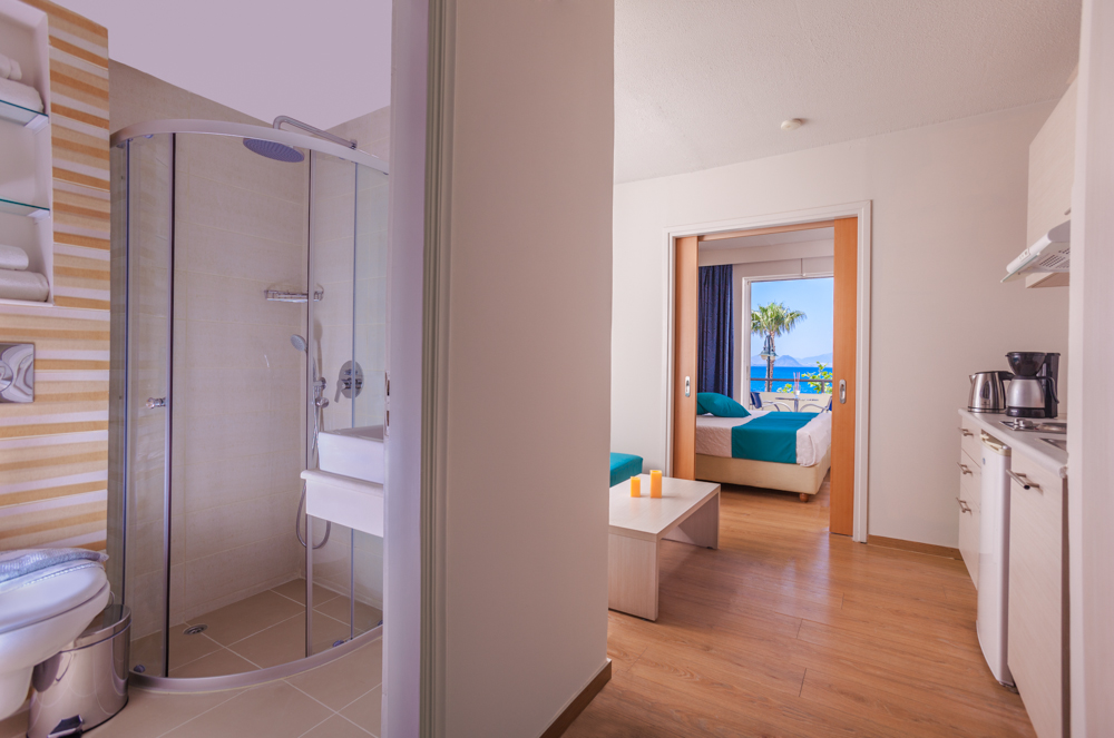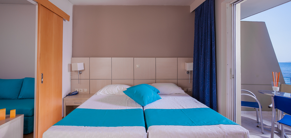 A scelta si possono prenotare appartamenti vista piscina e vista mare, che si trova proprio di fronte.