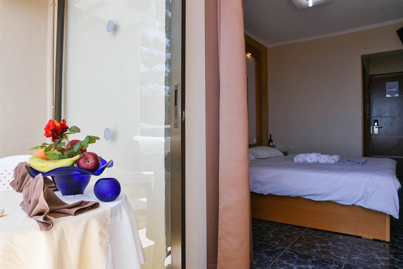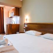 Al ristorante per pranzo e cena vengono serviti piatti della cucina greca e internazionale.