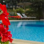 la struttura vanta una piscina all'aperto con bar, un ristorante, una palestra, e appartamenti spaziosi con vista sul giardino o sul mare.