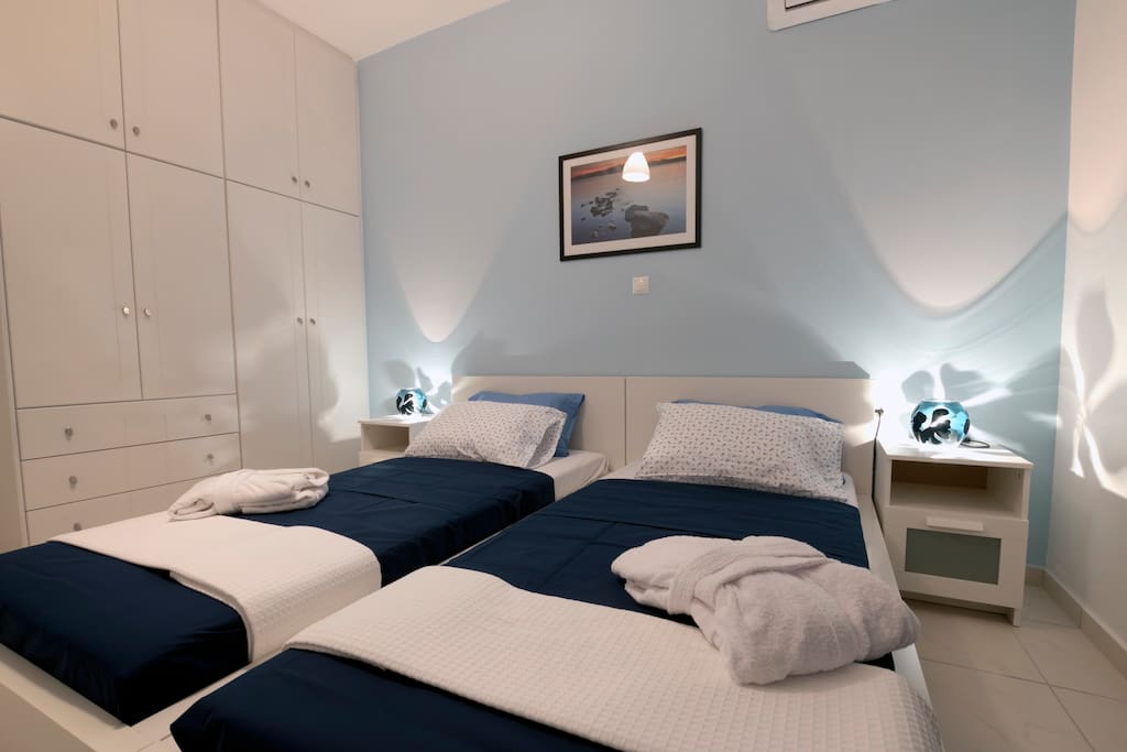 L'ingresso principale conduce al primo piano di fronte al mare; Si compone di 3 camere da letto (con letti matrimoniali) e 2 bagni.