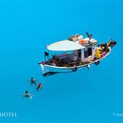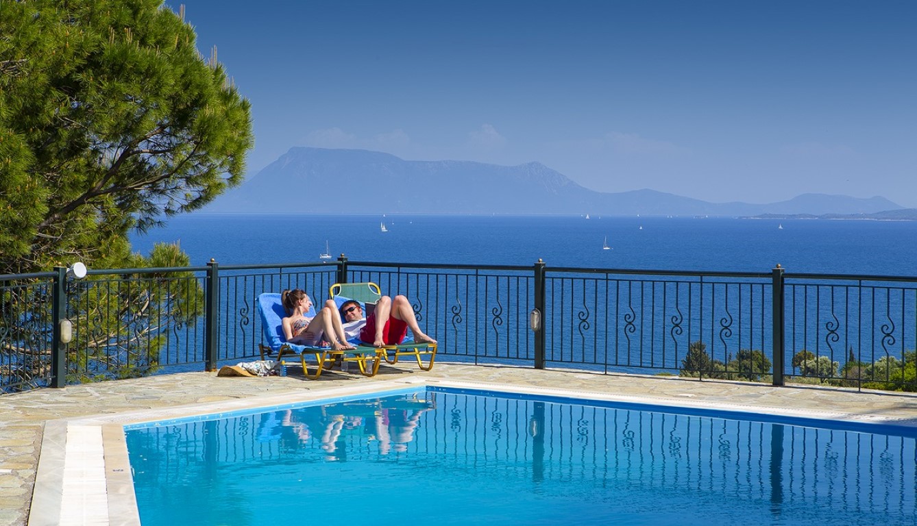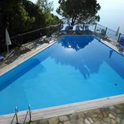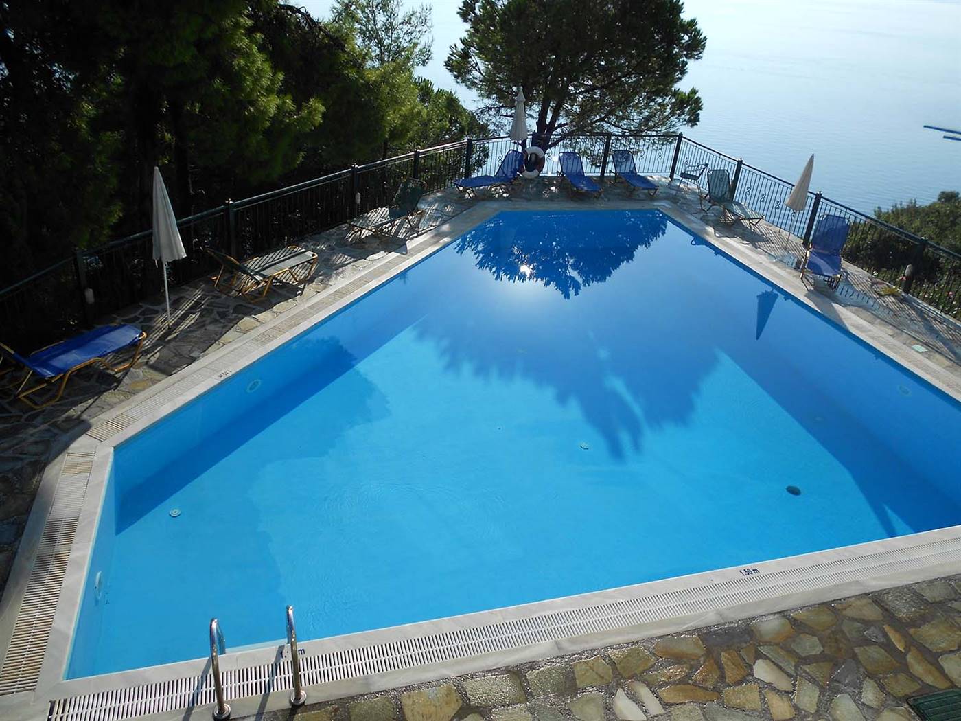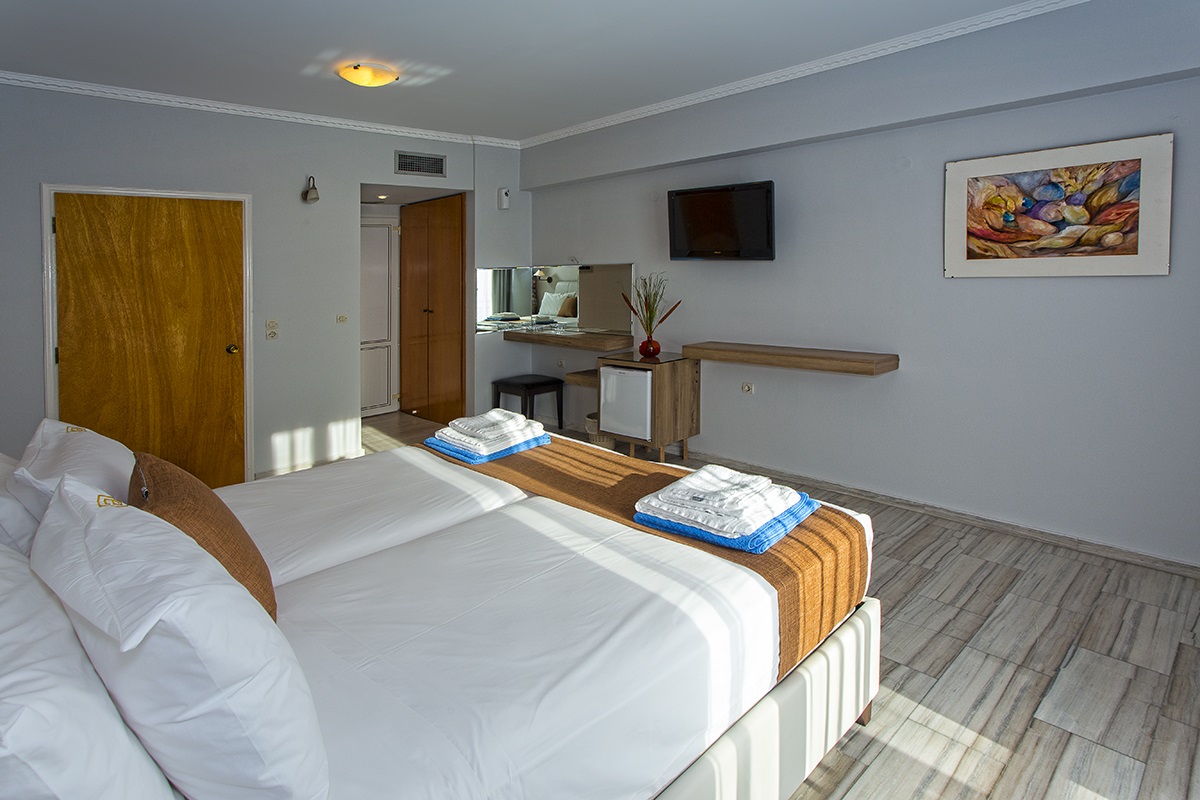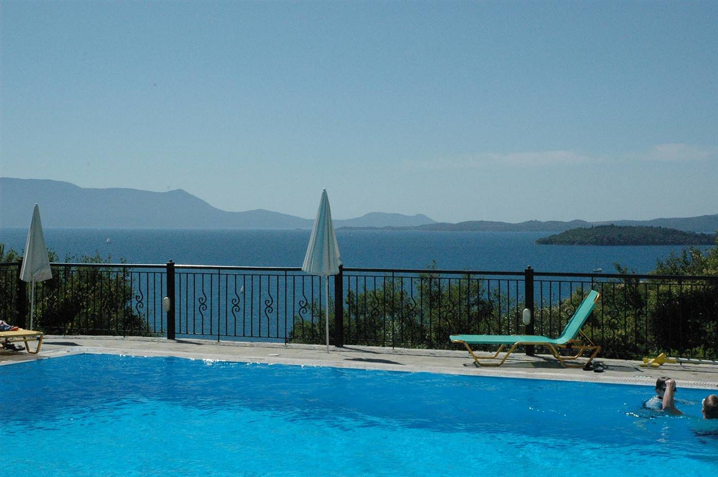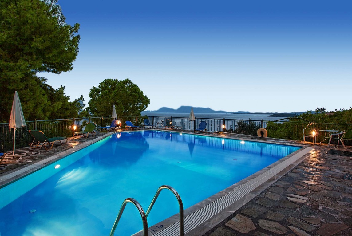 Gli alloggi  recentemente ristrutturato hanno una magnifica vista. Le camere sono attrezzate con letto matrimoniale o 2 letti singoli con divano letto, minibar, TV, aria condizionata. Tutte le camere sono dotate di balcone dove si può sedere, bere, mangiare spuntini e semplicemente godersi la spettacolare vista sul mare delle isole vicine, tra cui gli Scorpioni di proprietà della famiglia Onassis.
