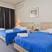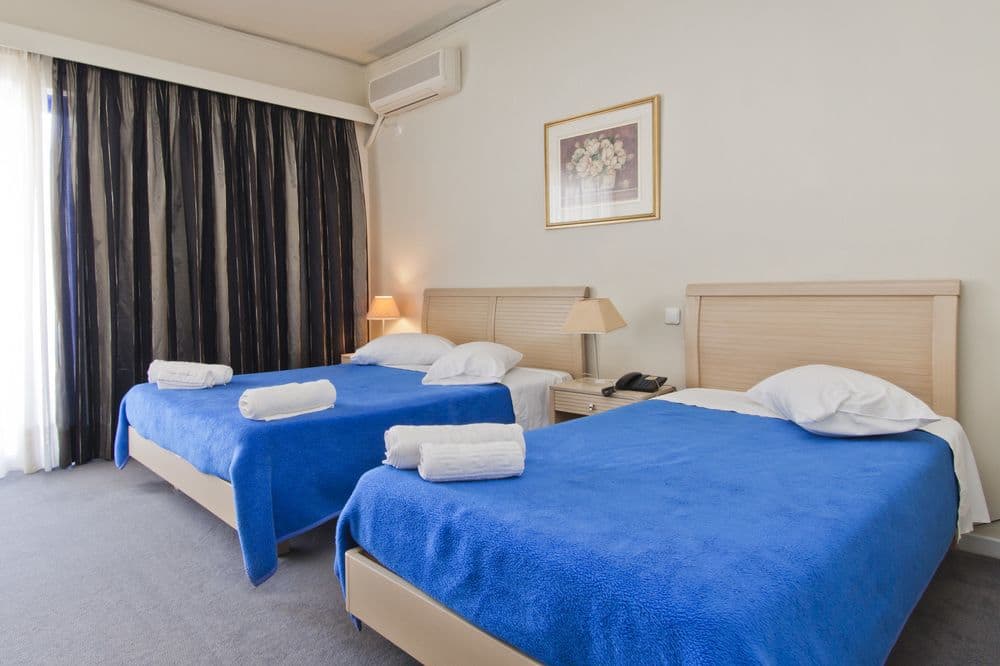 Tutte le camere dell'Hotel Ionion Star sono climatizzate e decorate elegantemente con colori terreni.