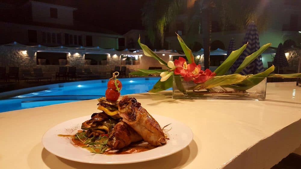 La colazione continentale viene servita nella sala da pranzo di fronte al mare. Nei mesi estivi, il pranzo e la cena vengono serviti nella veranda. Il lounge e il bar della piscina servono bevande, snack e gelati tutto il giorno.