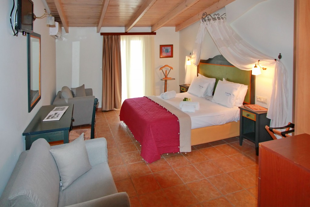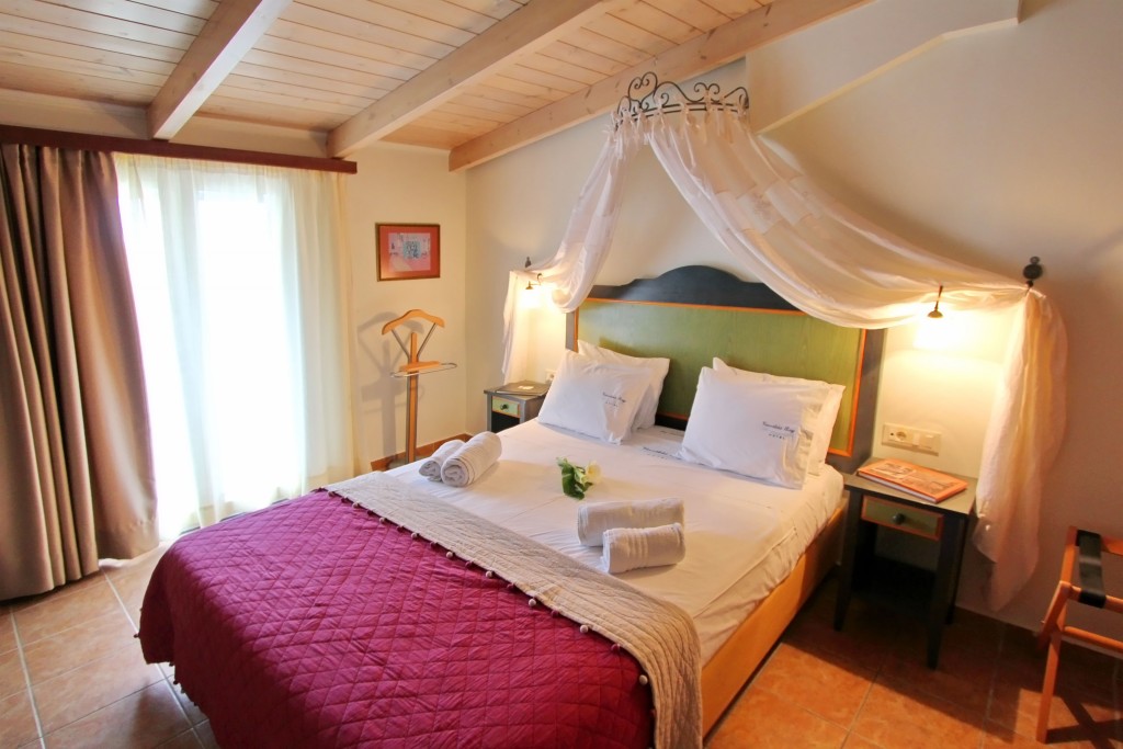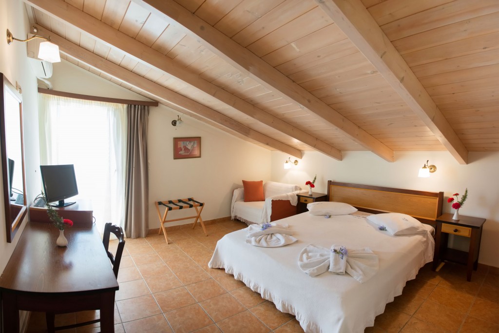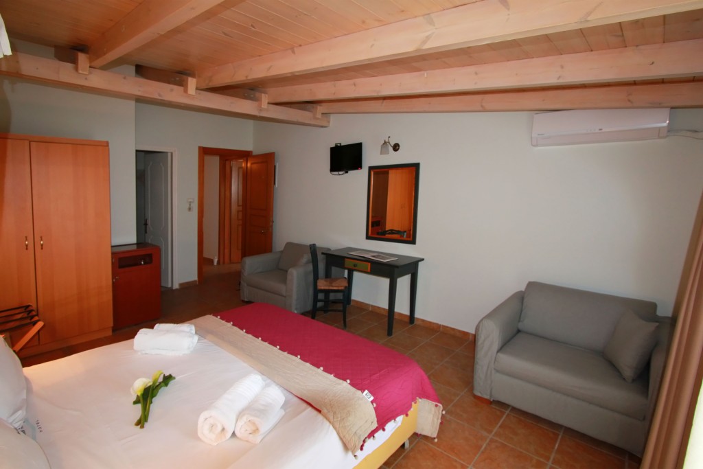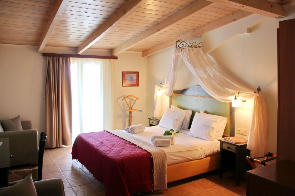 Luminose e arredate con gusto, le camere e le suite del Vassiliki Bay Hotel dispongono di balcone, bagno privato, aria condizionata, TV satellitare e frigorifero.