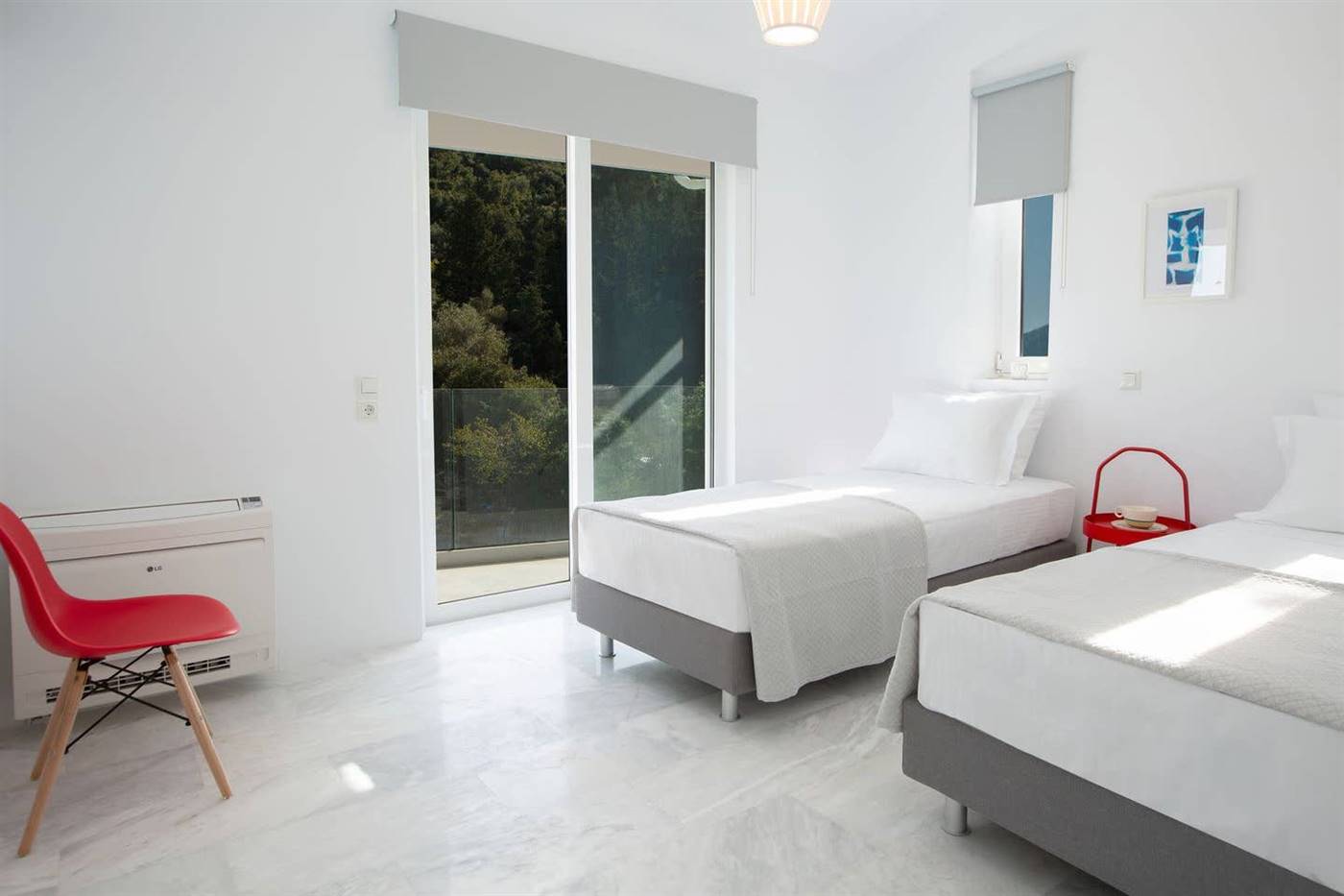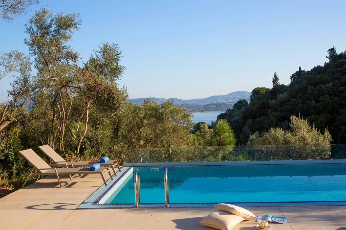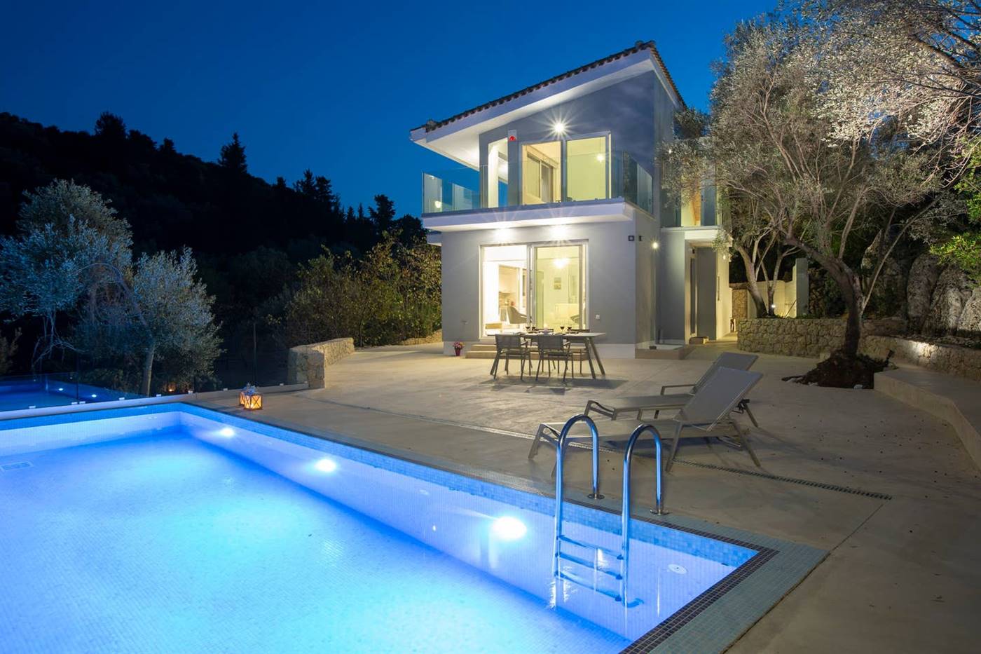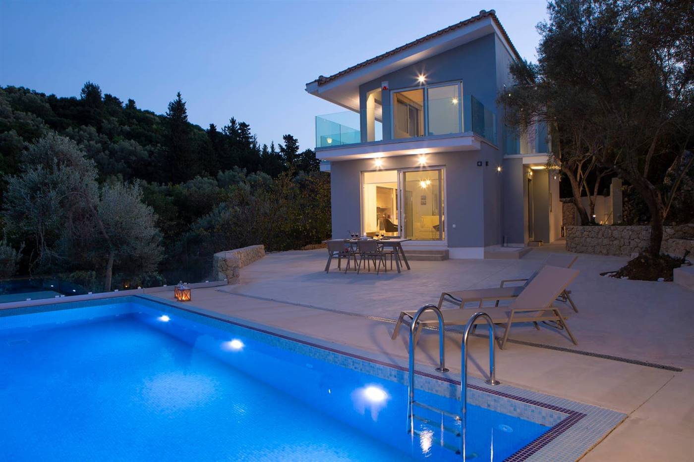 Le due case che si trovano in una zona conosciuta come "paradiso" per gli abitanti del luogo, sono chiamati Anticlea e Euriclea, dalla madre e dell'infermiera dell'eroe omerico. La zona è circondata dal verde, con una vista spettacolare sul canale di mare che separa l'isola dalla terra opposto di Acarnania. Nella villa si può godere il massimo relax avendo un tè freddo nel balcone o un drink a bordo piscina nel pomeriggio e lo sguardo al mare come il tramonto cambia la gamma di colori nel cielo pomeridiano. La villa si combina semplicità e lusso, situata sulla cima di una collina, con vista sul mare! Entrambe le case sono state progettate con i migliori materiali e nel rispetto per l'ambiente. Grazie al nostro amore per l'ambiente, abbiamo conservato l'ambiente naturale, in modo da l'ospite può godere ed apprezzare le bellezze naturali della Grecia. Un'altra caratteristica dell'isola di Lefkada è ulivi verde-argento unici che dominano i dintorni delle ville con la loro presenza. Abbiamo anche conservato altri alberi locali come piante di mirto, Giuda alberi ecc Le case sono a soli 400 metri dalla spiaggia più vicina e il villaggio di Lygia dove è possibile fare la spesa della visita di una taverna di pesce in riva al mare. La distanza dalla città di Lefkada è a soli 5 km. La rete stradale dell'isola offre la vicinanza di alcune delle più belle e famose spiagge del Mediterraneo. In ogni villa, al piano superiore ci sono 2 camere da letto con una splendida vista sul mare e un balcone d'angolo che serve gli ospiti di entrambe le camere.