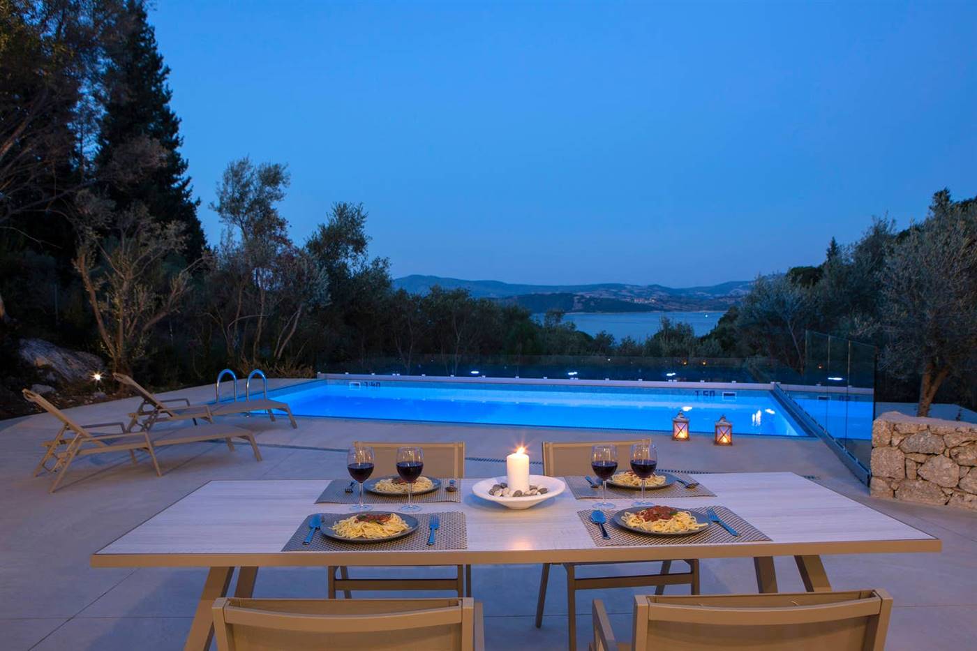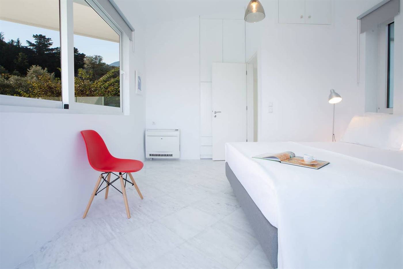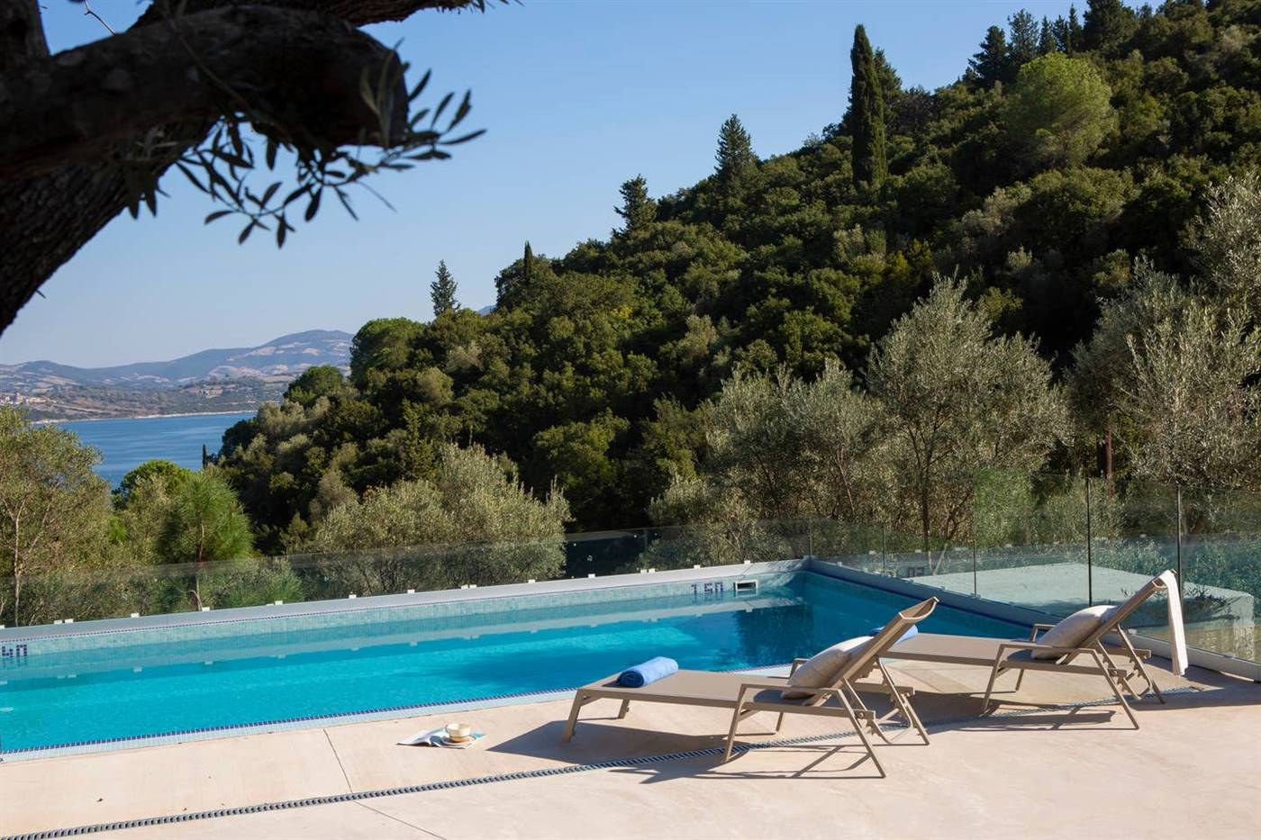 Le due case che si trovano in una zona conosciuta come "paradiso" per gli abitanti del luogo, sono chiamati Anticlea e Euriclea, dalla madre e dell'infermiera dell'eroe omerico. La zona è circondata dal verde, con una vista spettacolare sul canale di mare che separa l'isola dalla terra opposto di Acarnania. Nella villa si può godere il massimo relax avendo un tè freddo nel balcone o un drink a bordo piscina nel pomeriggio e lo sguardo al mare come il tramonto cambia la gamma di colori nel cielo pomeridiano. La villa si combina semplicità e lusso, situata sulla cima di una collina, con vista sul mare! Entrambe le case sono state progettate con i migliori materiali e nel rispetto per l'ambiente. Grazie al nostro amore per l'ambiente, abbiamo conservato l'ambiente naturale, in modo da l'ospite può godere ed apprezzare le bellezze naturali della Grecia. Un'altra caratteristica dell'isola di Lefkada è ulivi verde-argento unici che dominano i dintorni delle ville con la loro presenza. Abbiamo anche conservato altri alberi locali come piante di mirto, Giuda alberi ecc Le case sono a soli 400 metri dalla spiaggia più vicina e il villaggio di Lygia dove è possibile fare la spesa della visita di una taverna di pesce in riva al mare. La distanza dalla città di Lefkada è a soli 5 km. La rete stradale dell'isola offre la vicinanza di alcune delle più belle e famose spiagge del Mediterraneo. In ogni villa, al piano superiore ci sono 2 camere da letto con una splendida vista sul mare e un balcone d'angolo che serve gli ospiti di entrambe le camere.